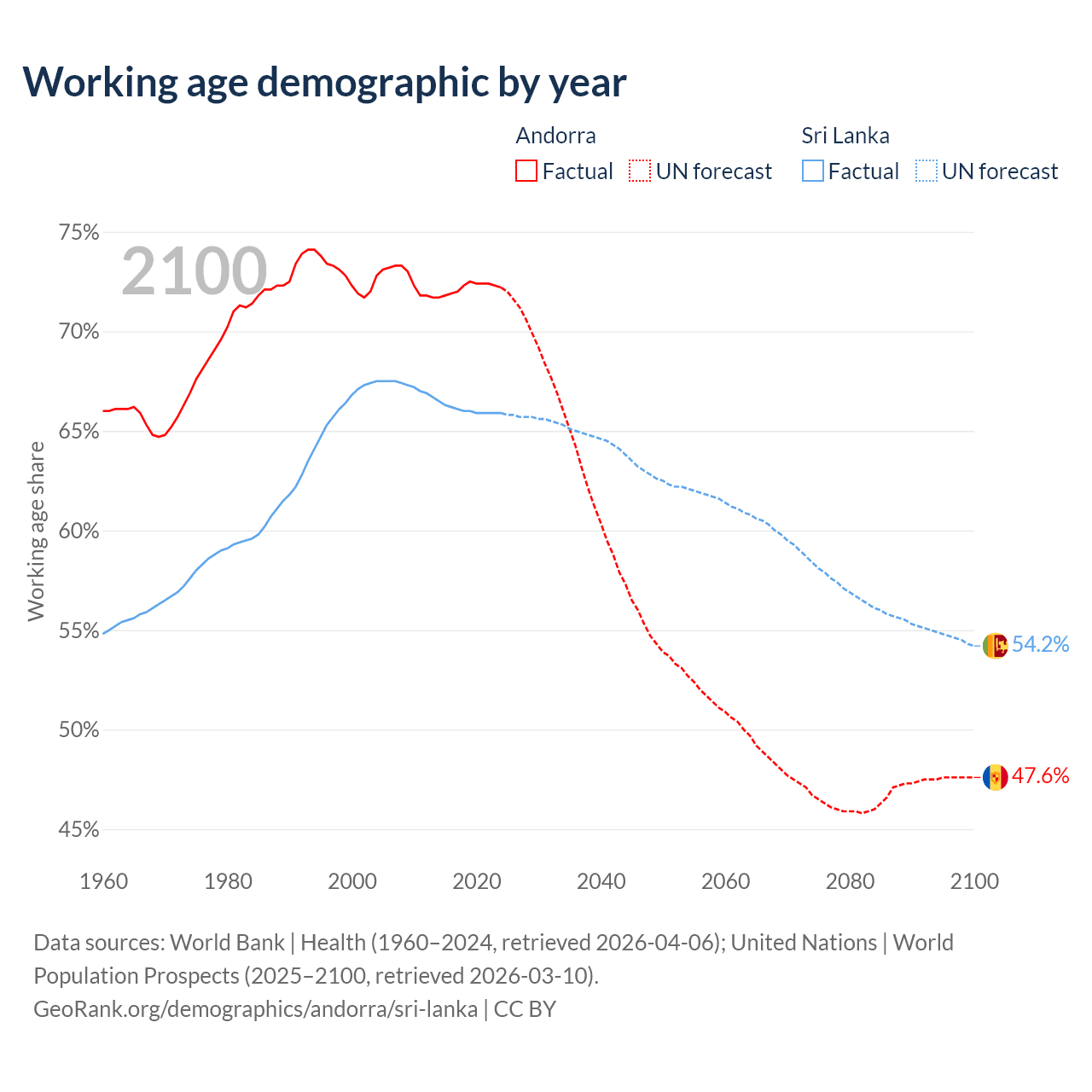 - Andorra has 60.7K working age adults (aged 15-64) vs 14.6M in Sri Lanka.