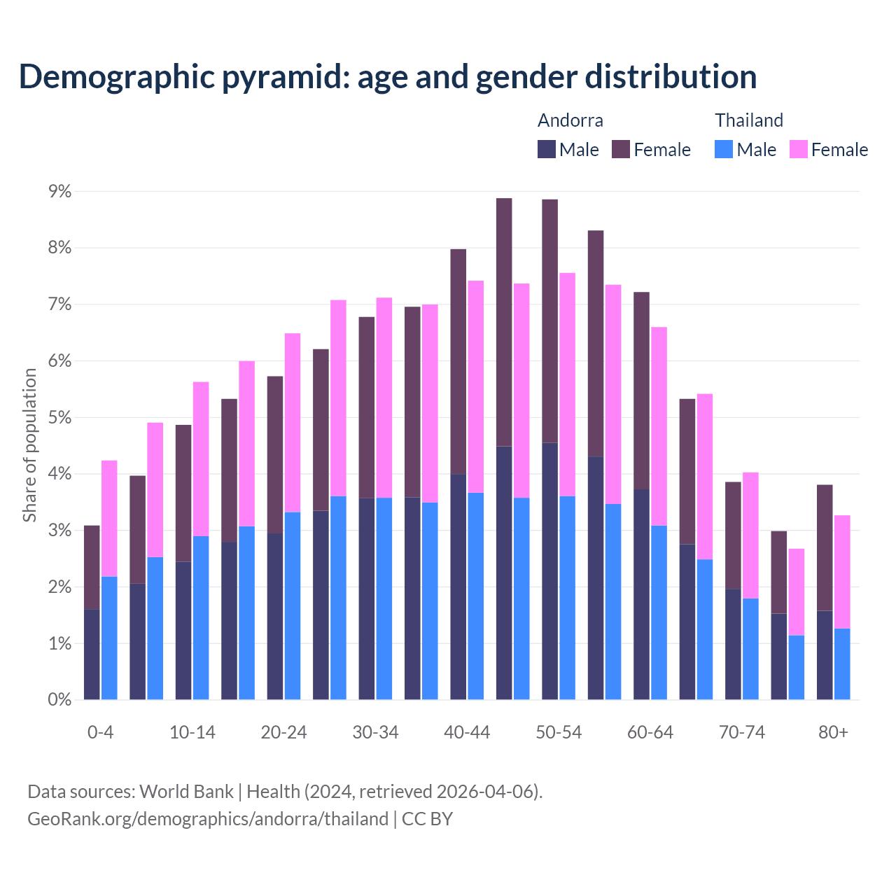 Demographics of Andorra compared to Thailand: