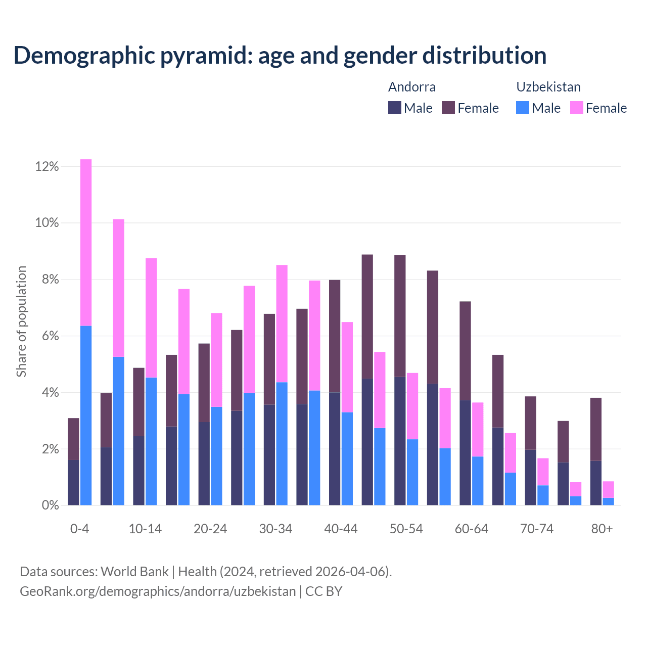 Demographics of Andorra compared to Uzbekistan:
