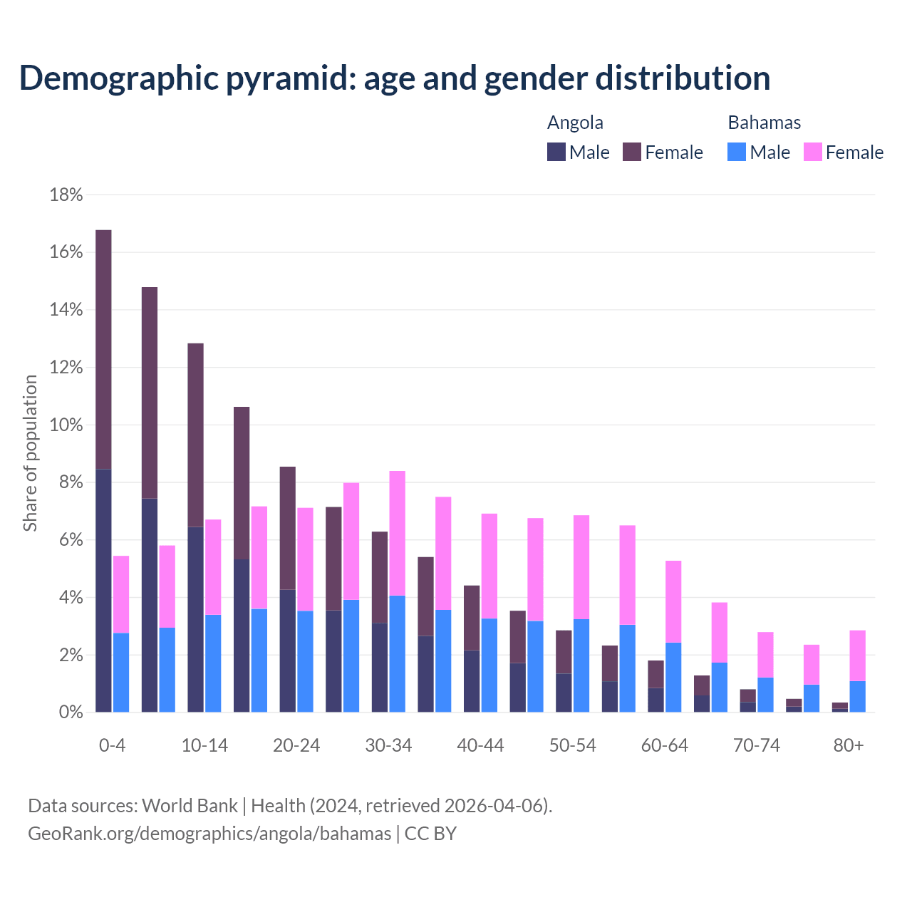 Demographics of Angola compared to the Bahamas: