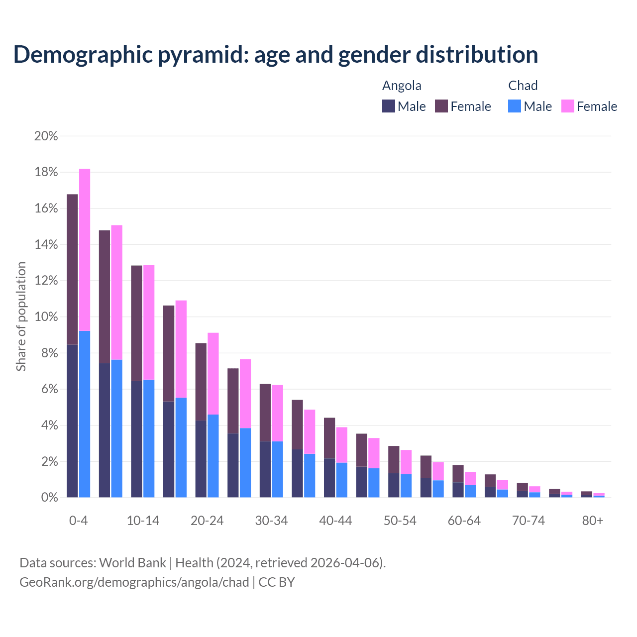 Demographics of Angola compared to Chad: