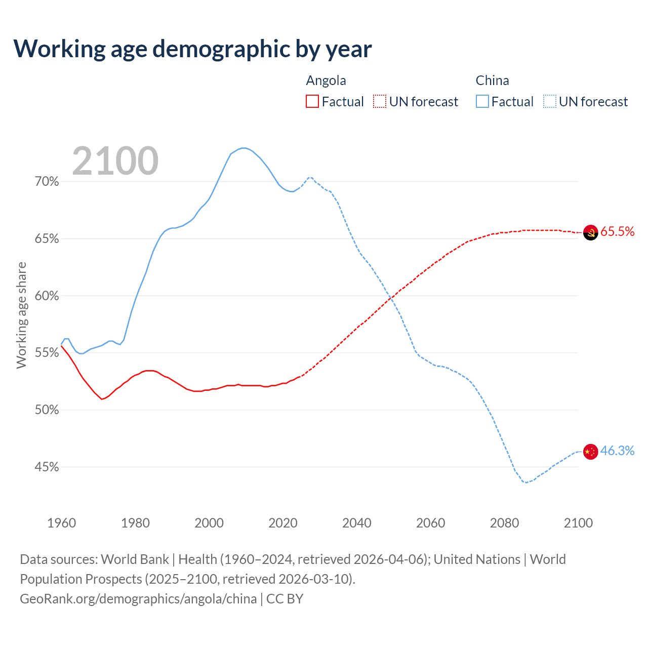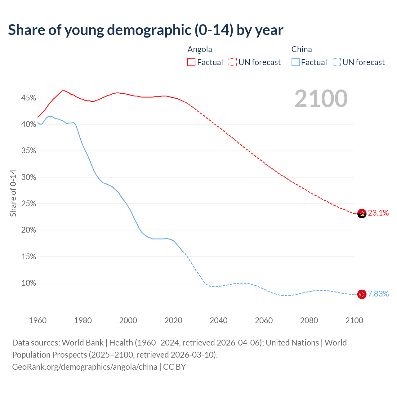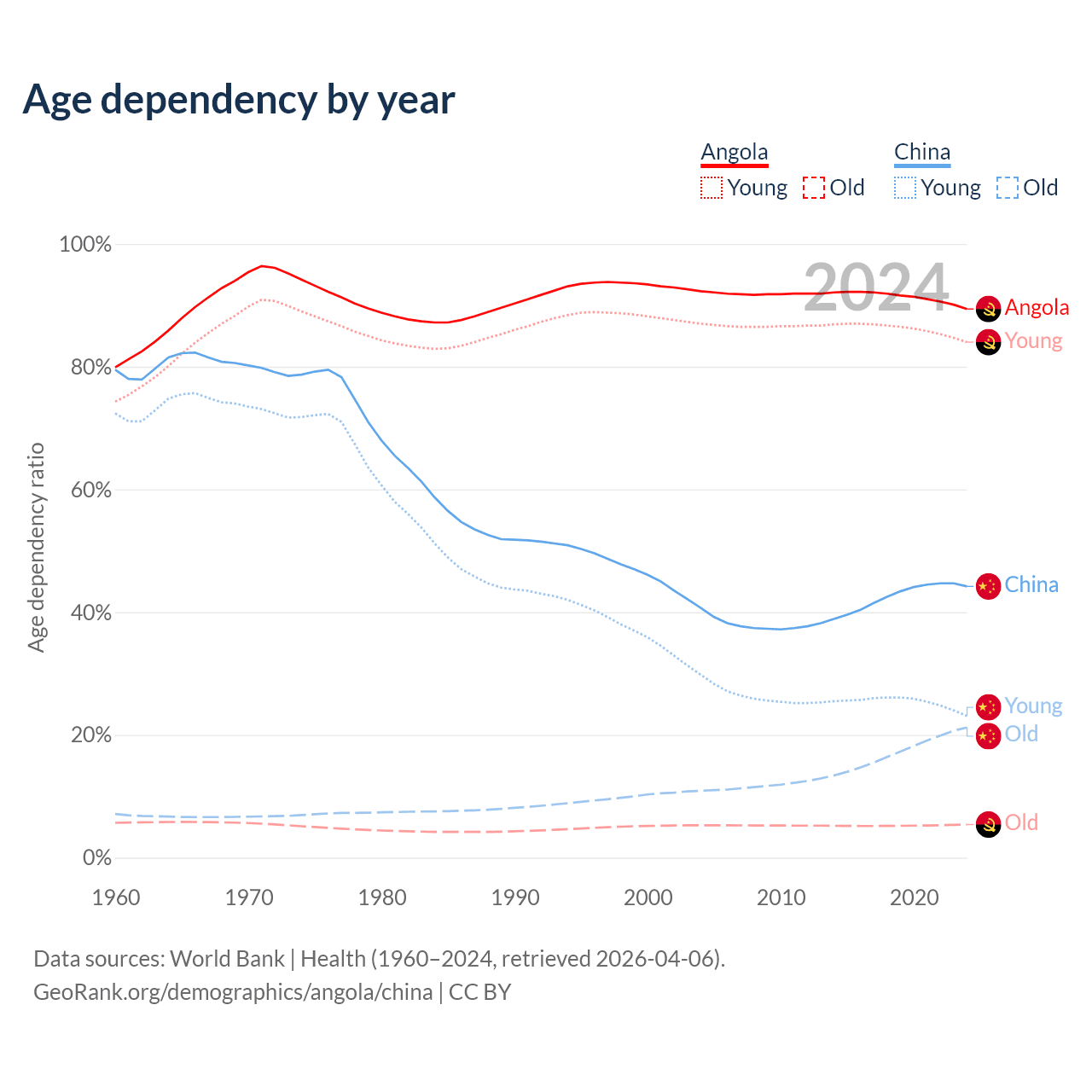 Demographics of Angola compared to China: