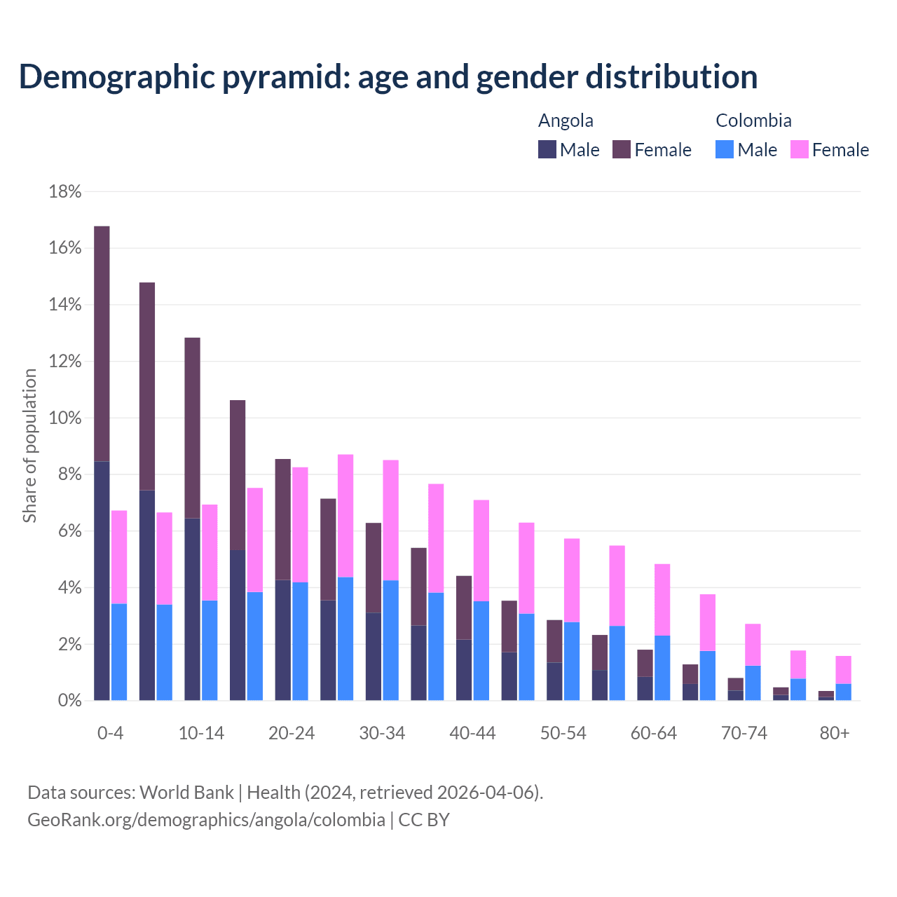 Demographics of Angola compared to Colombia: