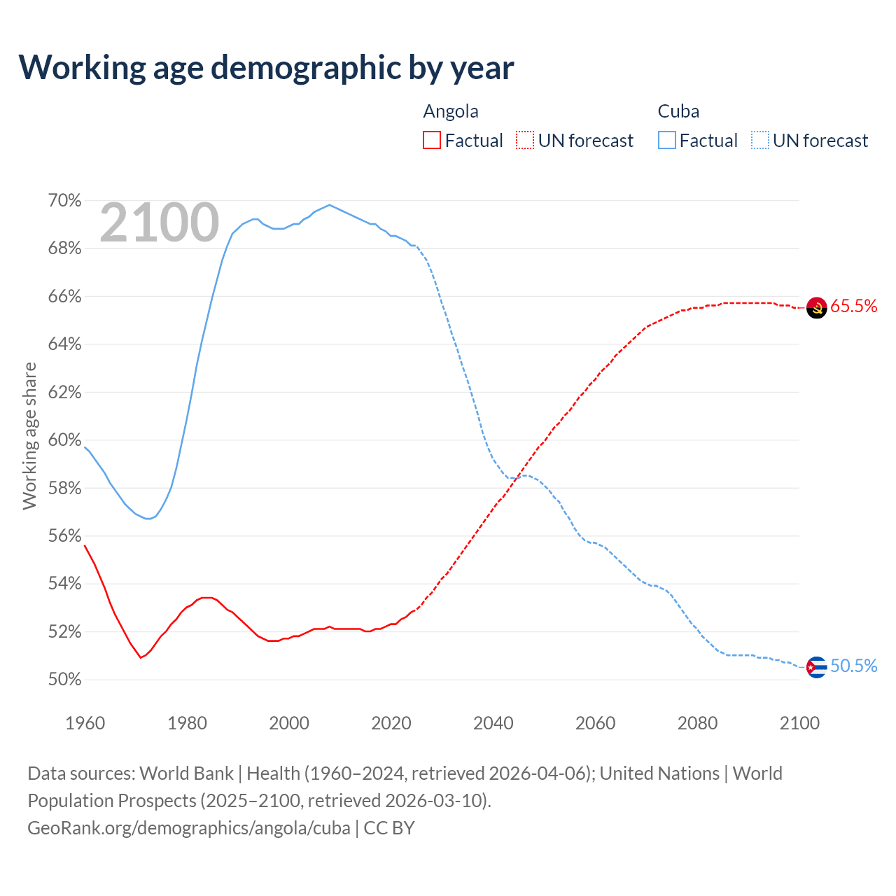 - Angola has 21.4M working age adults (aged 15-64) vs 7.42M in Cuba.