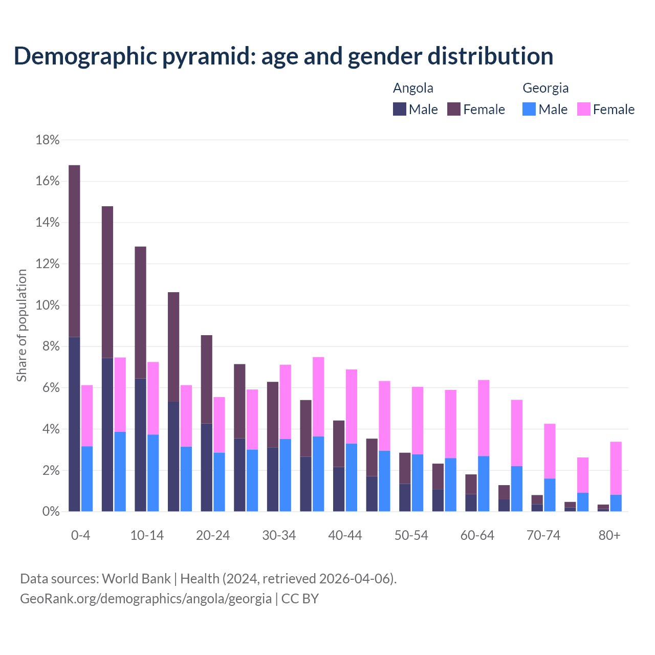 Demographics of Angola compared to Georgia: