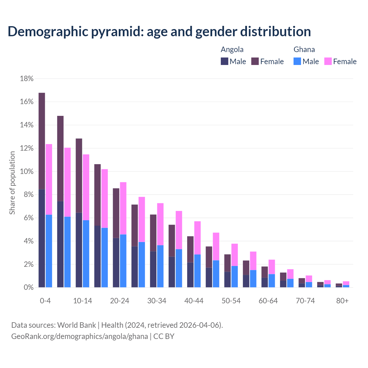 Demographics of Angola compared to Ghana: