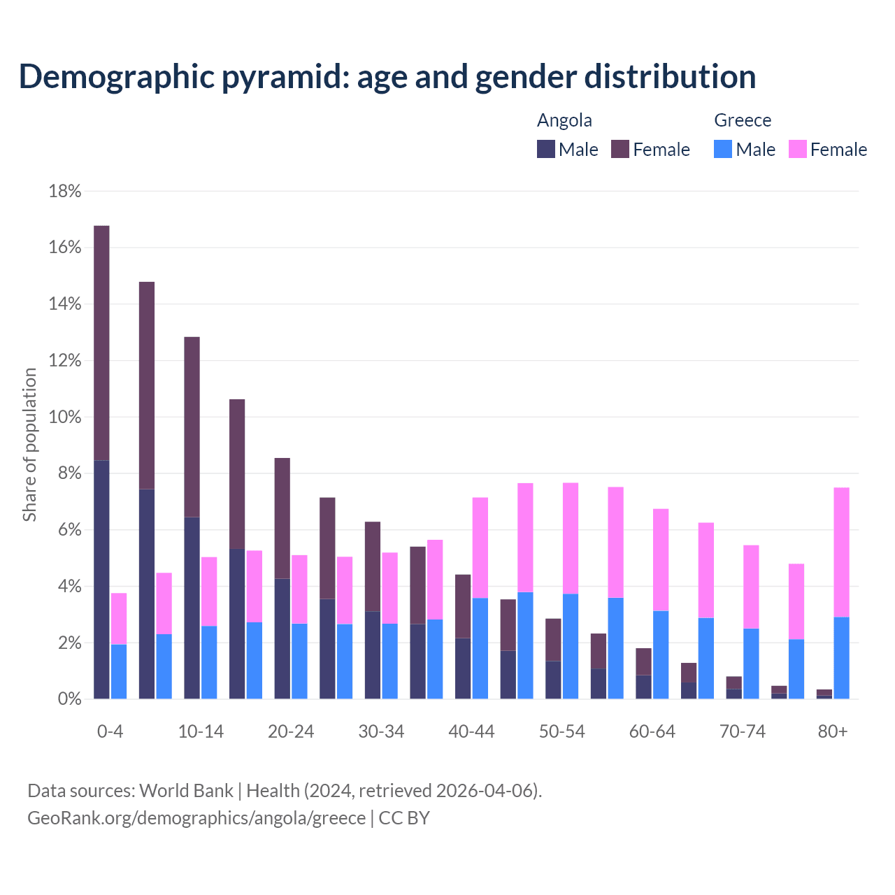 Demographics of Angola compared to Greece: