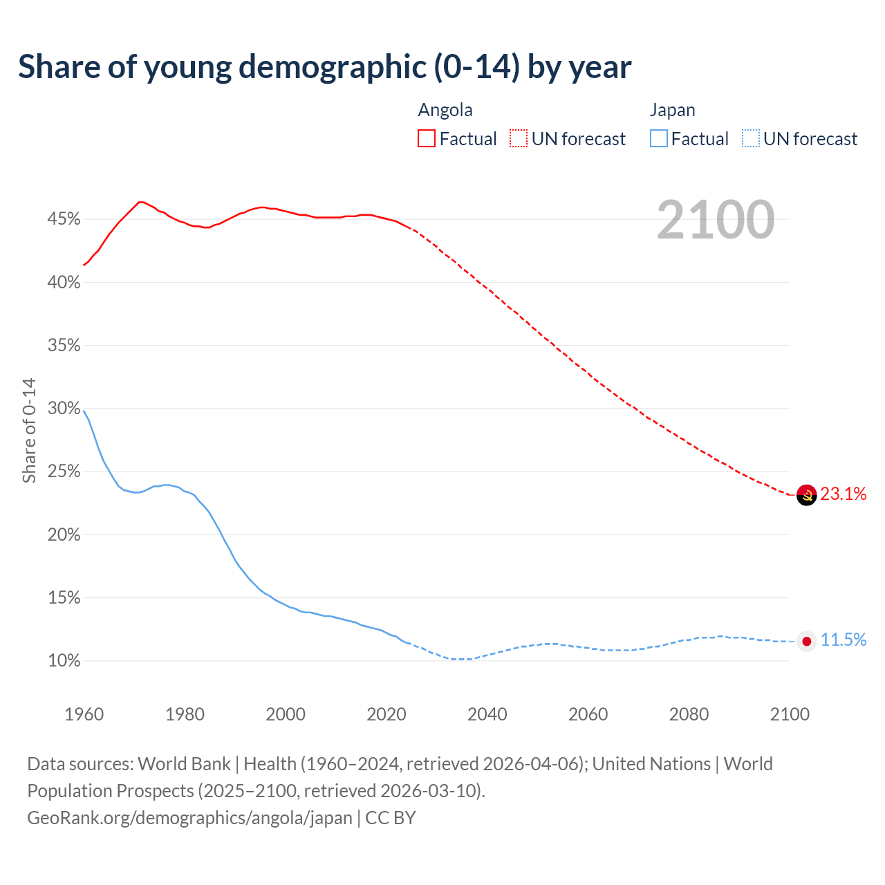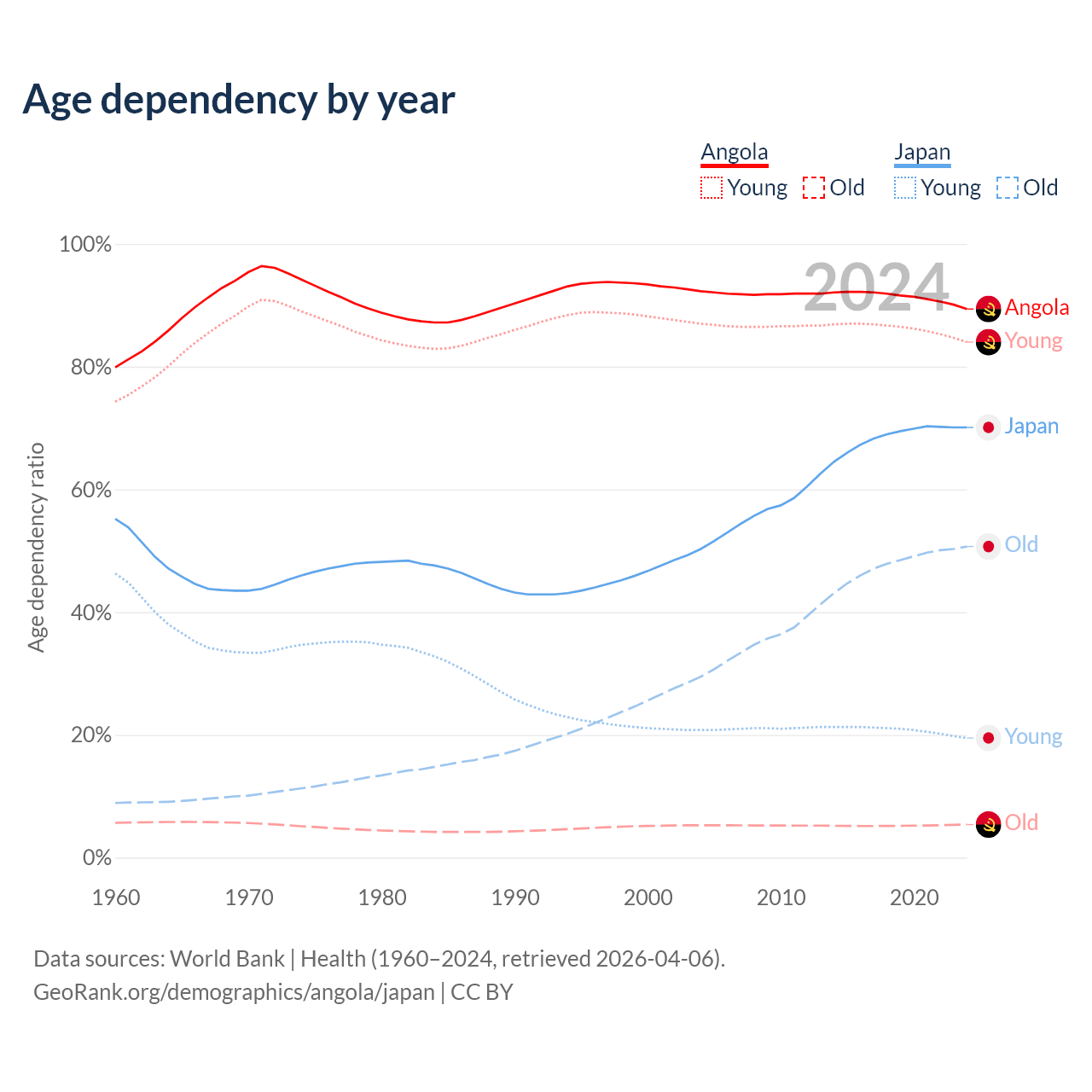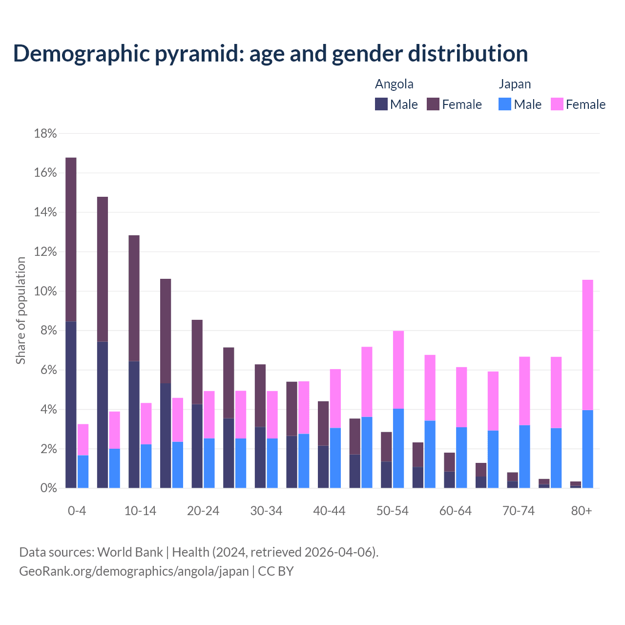 Demographics of Angola compared to Japan:
