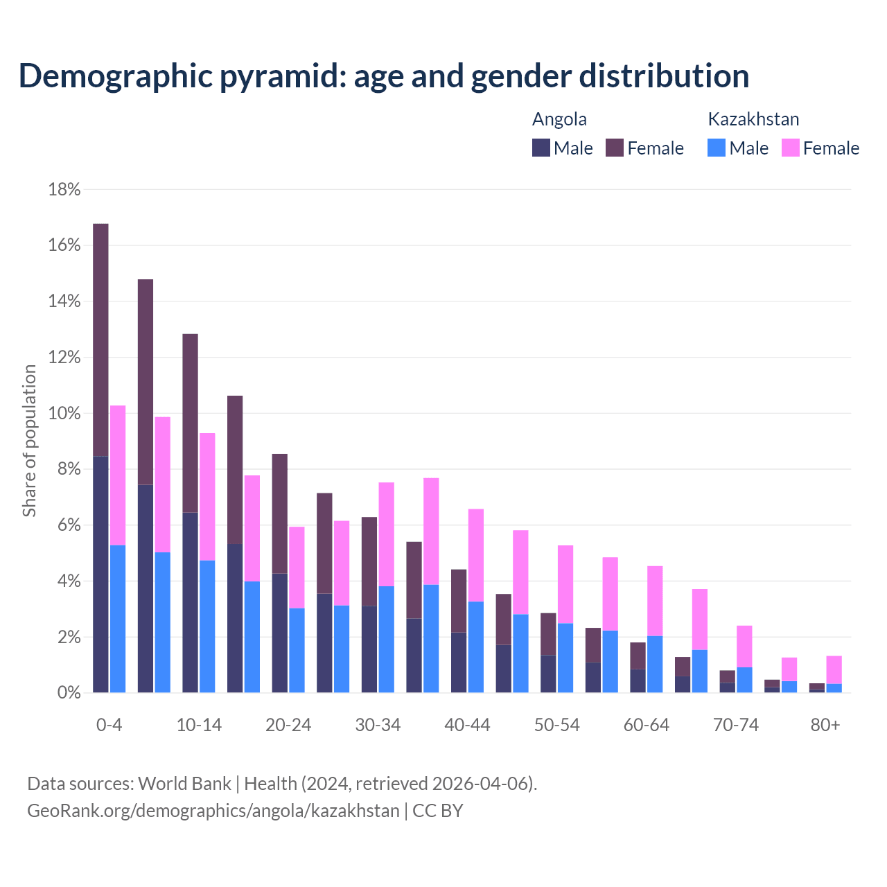 Demographics of Angola compared to Kazakhstan: