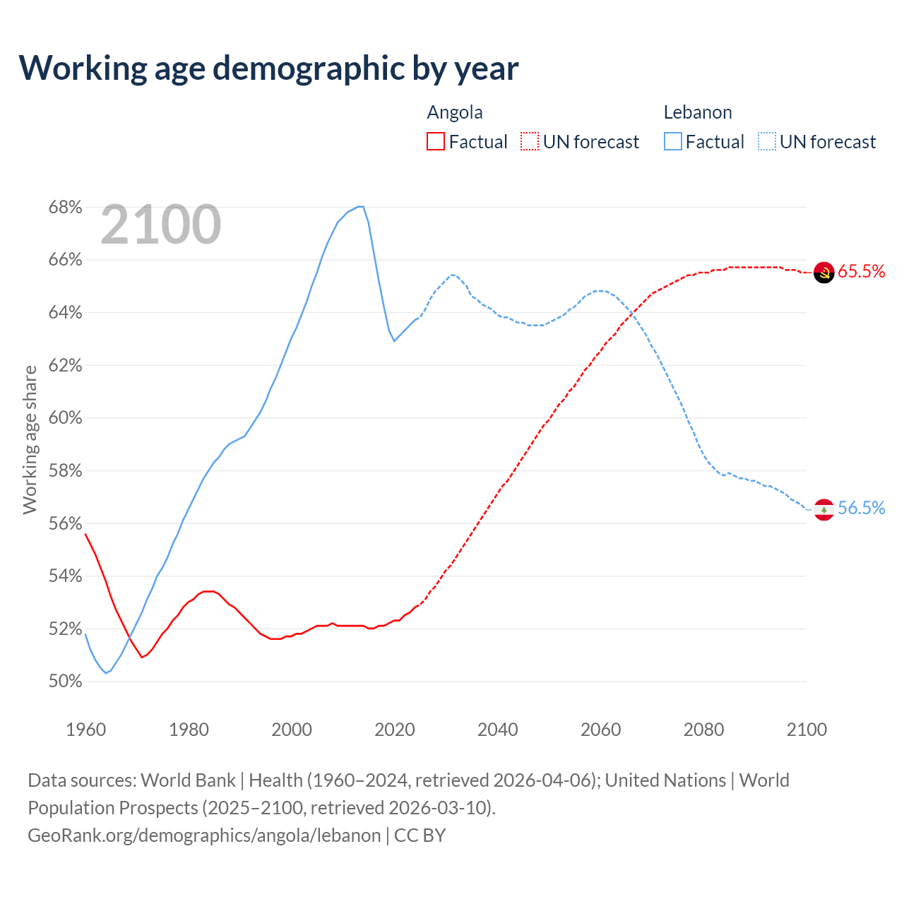 - Angola has 21.4M working age adults (aged 15-64) vs 3.76M in Lebanon.