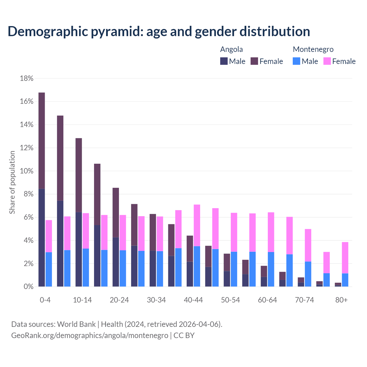 Demographics of Angola compared to Montenegro: