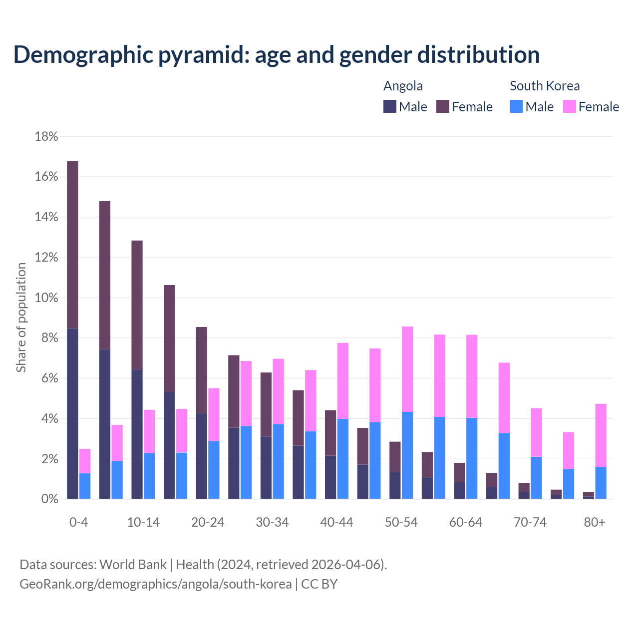 Demographics of Angola compared to South Korea: