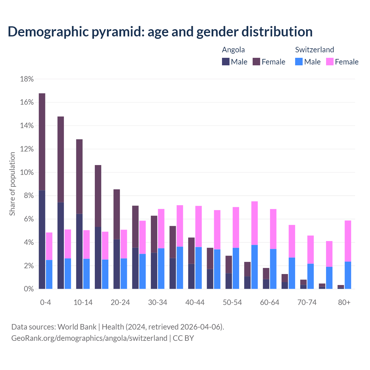 Demographics of Angola compared to Switzerland: