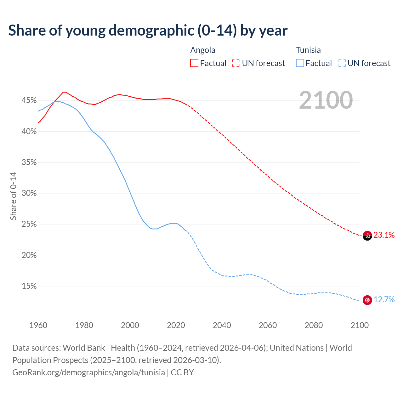Demographics of Angola compared to Tunisia: