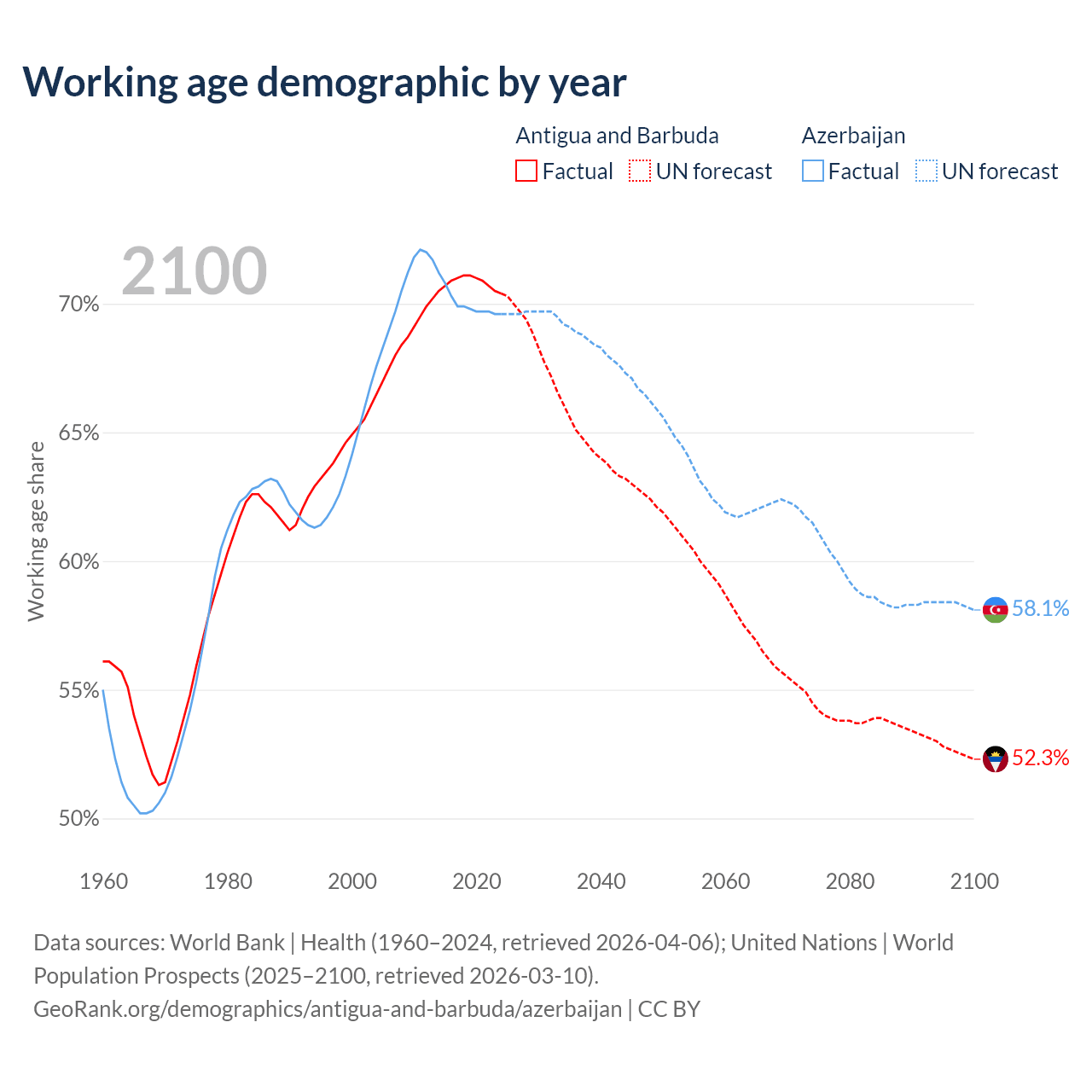 - Antigua and Barbuda has 66.7K working age adults (aged 15-64) vs 7.2M in Azerbaijan.