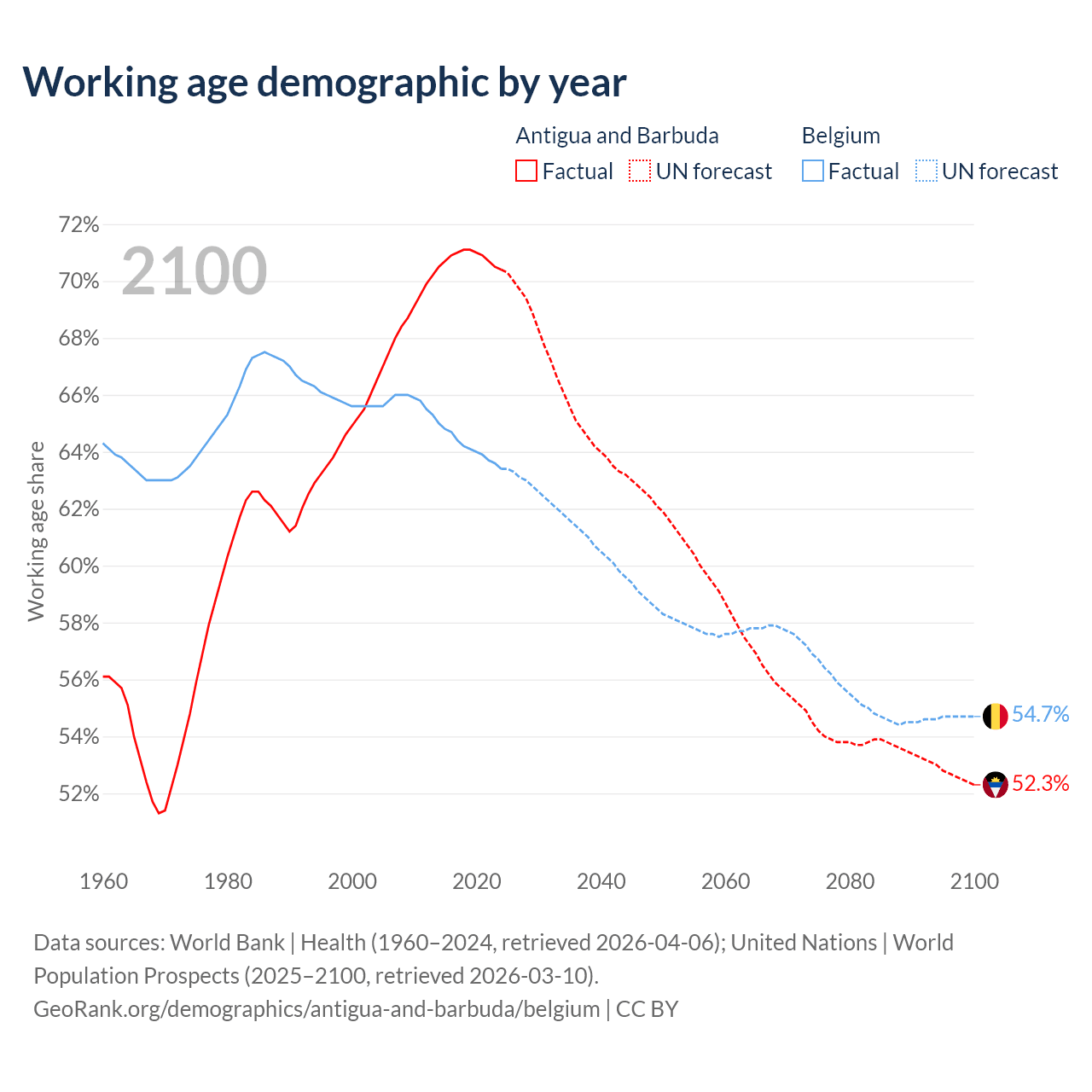 - Antigua and Barbuda has 66.7K working age adults (aged 15-64) vs 7.55M in Belgium.