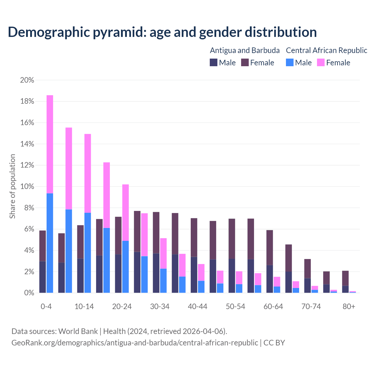 Demographics of Antigua and Barbuda compared to the Central African Republic: