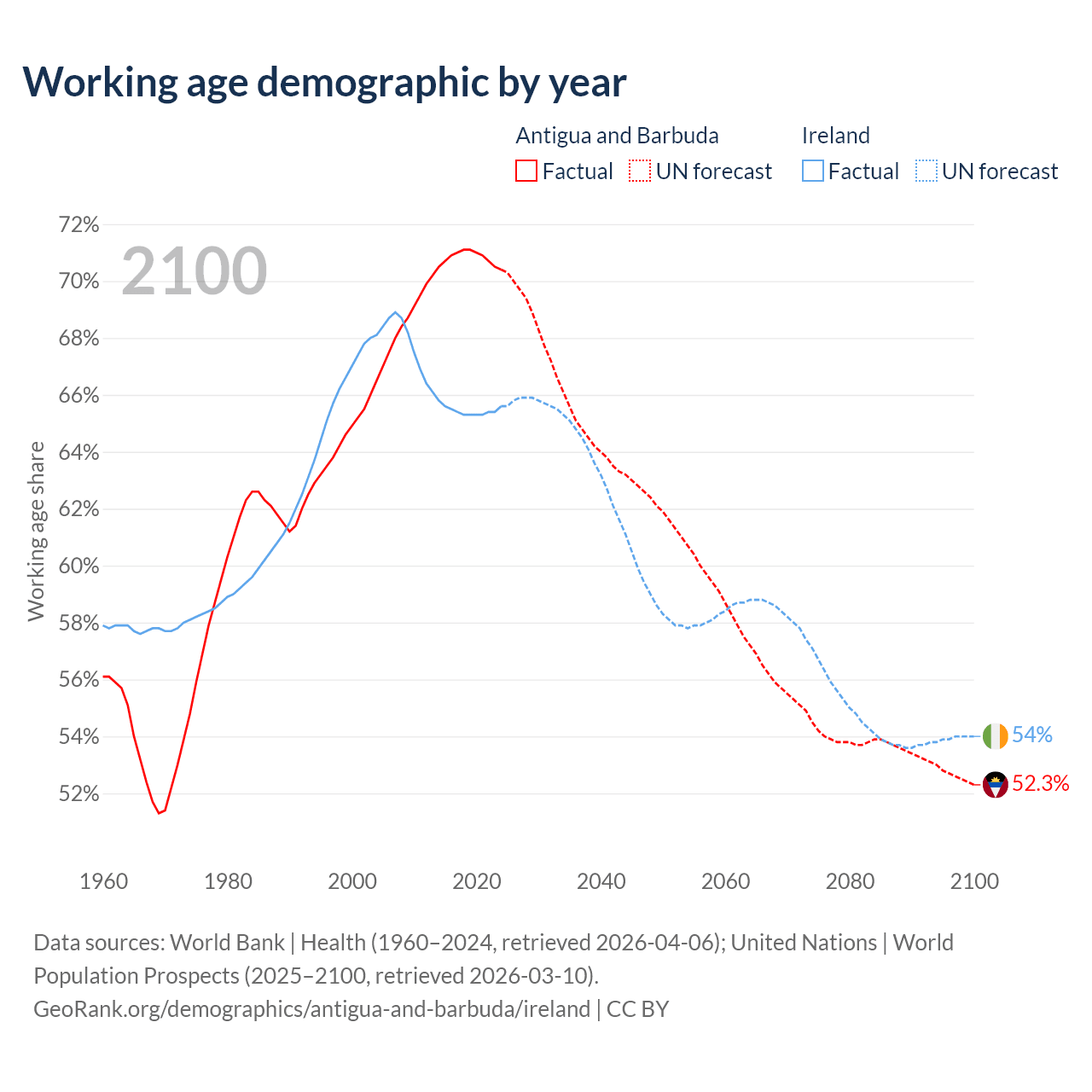 - Antigua and Barbuda has 66.7K working age adults (aged 15-64) vs 3.62M in Ireland.