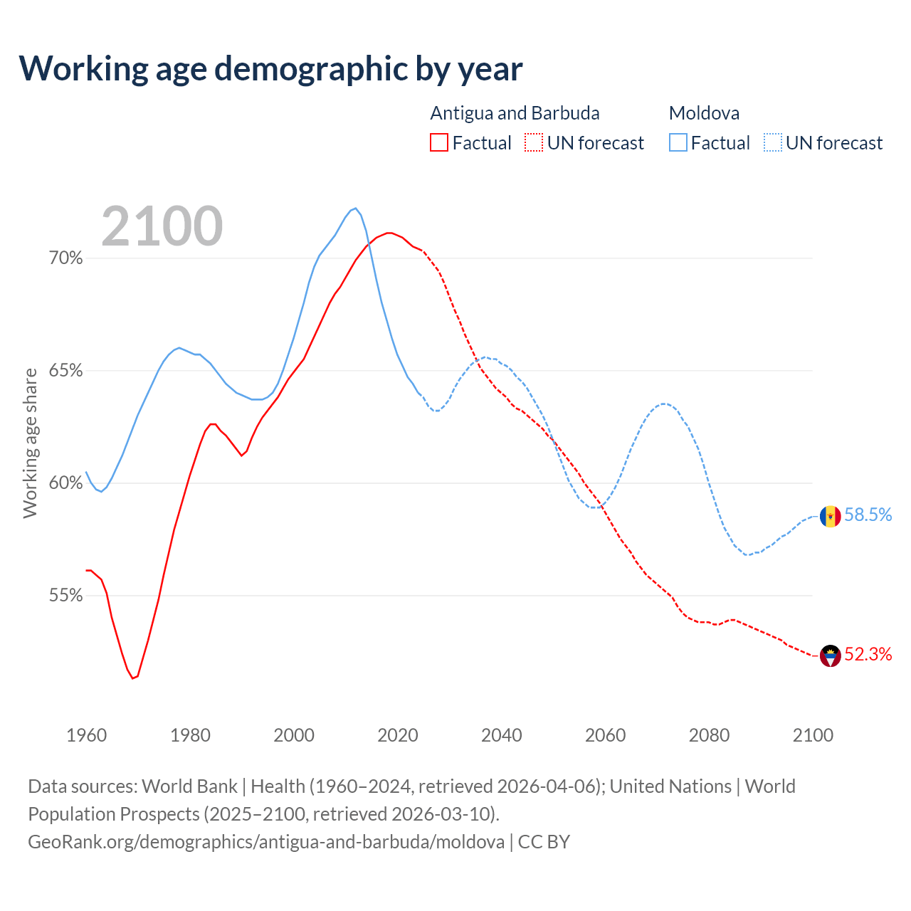- Antigua and Barbuda has 66.7K working age adults (aged 15-64) vs 1.5M in Moldova.