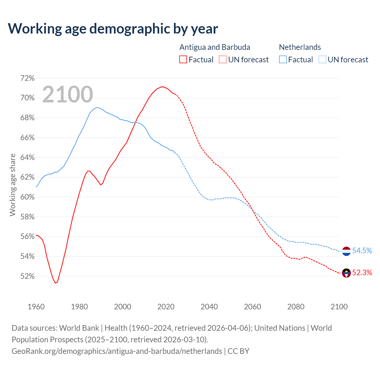 - Antigua and Barbuda has 66.7K working age adults (aged 15-64) vs 11.8M in the Netherlands.