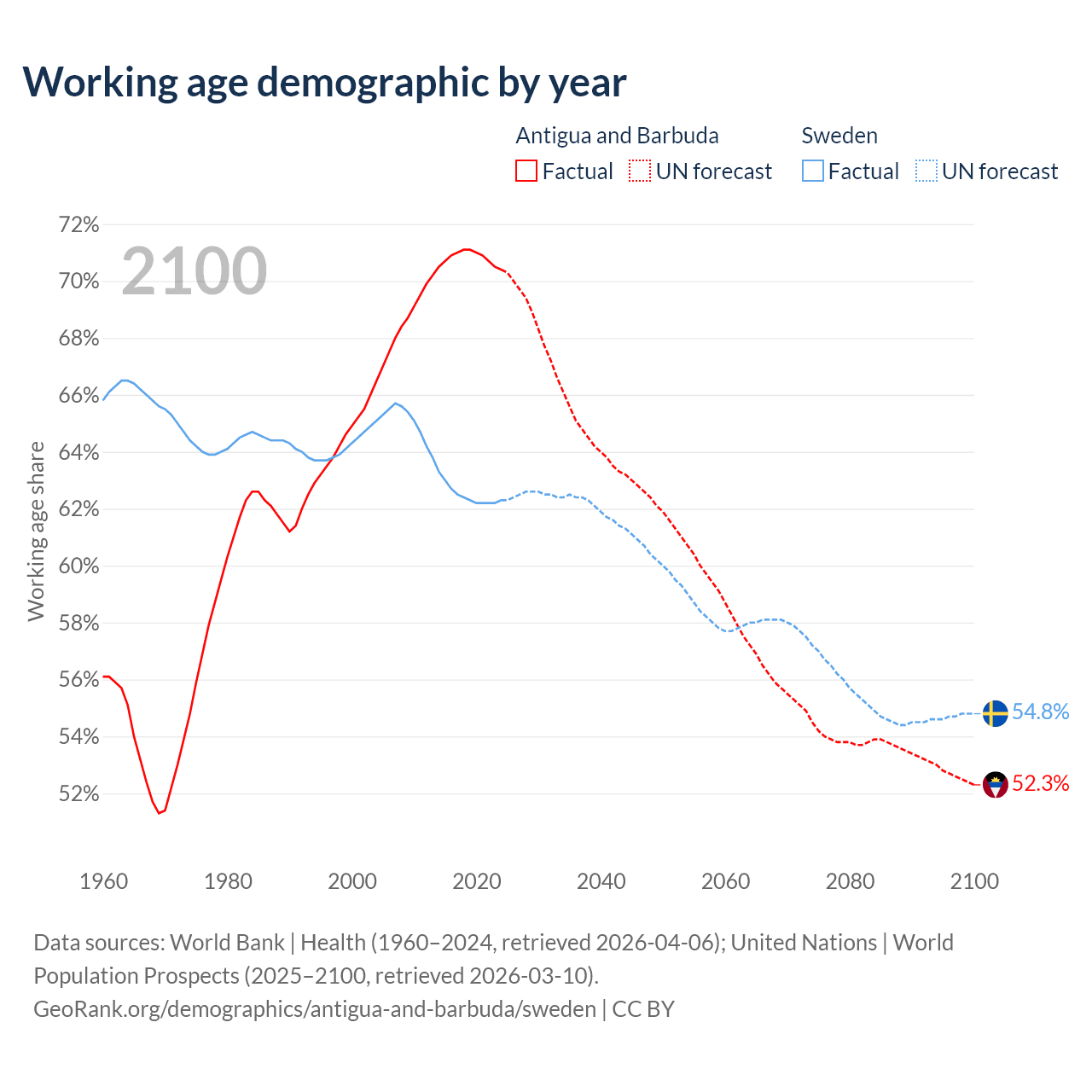 - Antigua and Barbuda has 66.7K working age adults (aged 15-64) vs 6.65M in Sweden.
