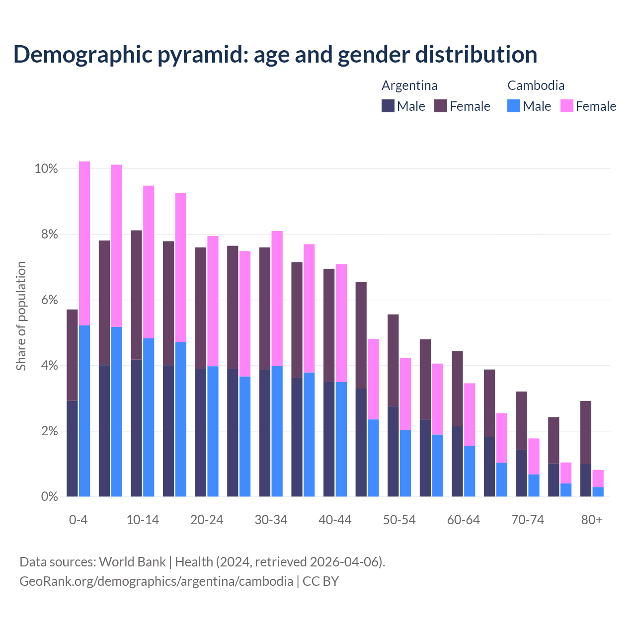 Demographics of Argentina compared to Cambodia: