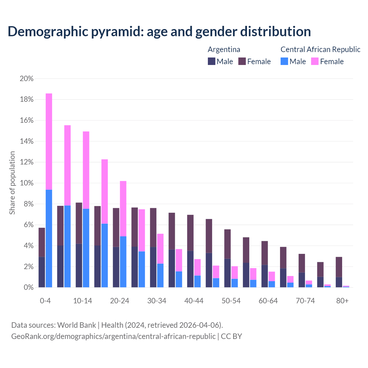 Demographics of Argentina compared to the Central African Republic: