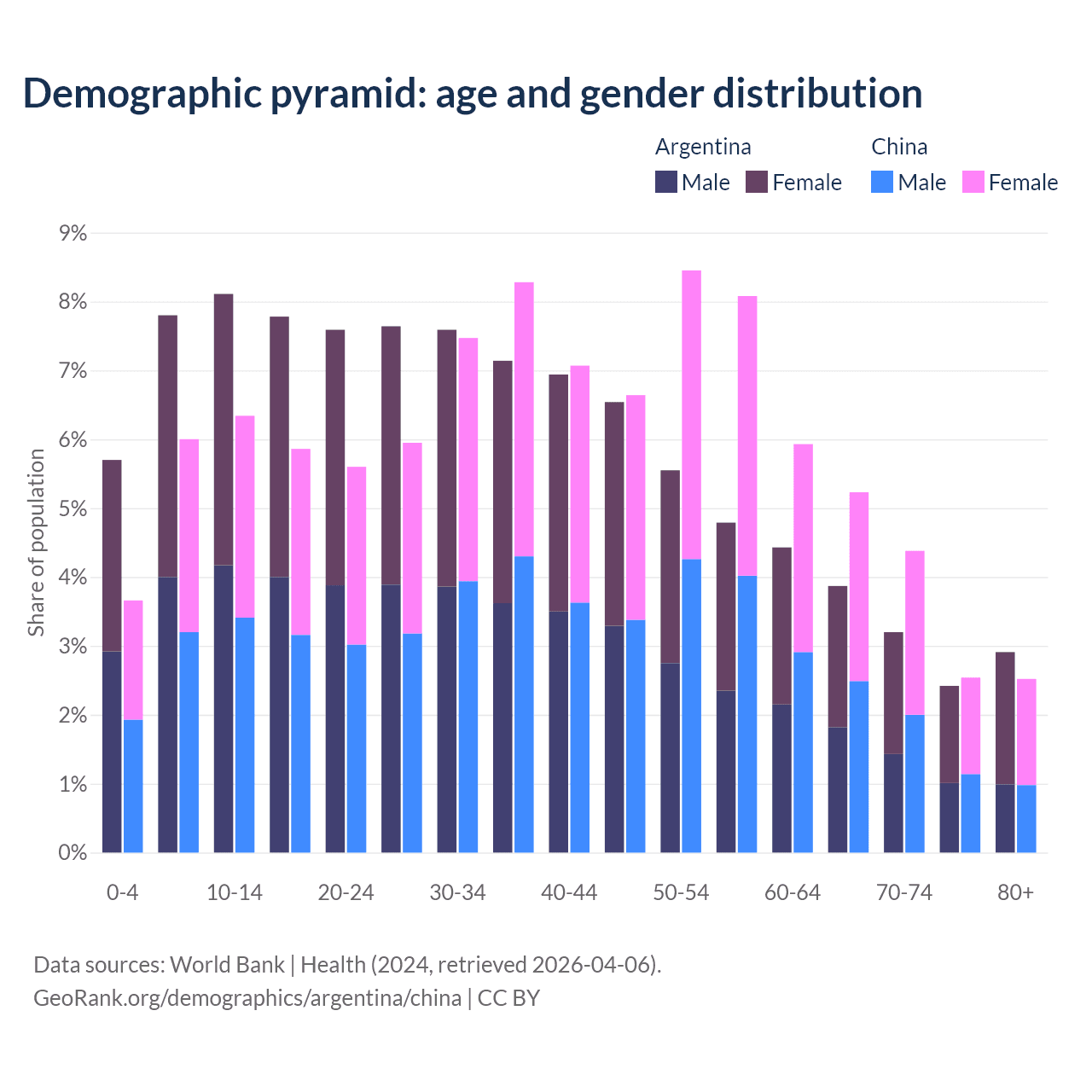 Demographics of Argentina compared to China: