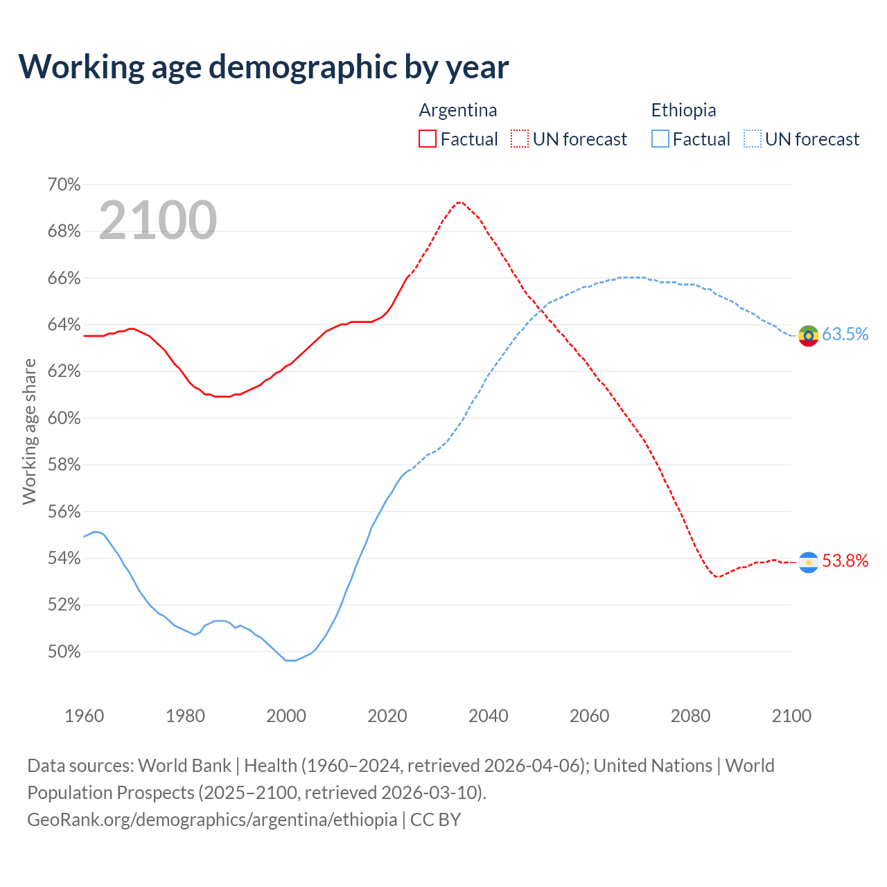 - Argentina has 30.4M working age adults (aged 15-64) vs 80.7M in Ethiopia.