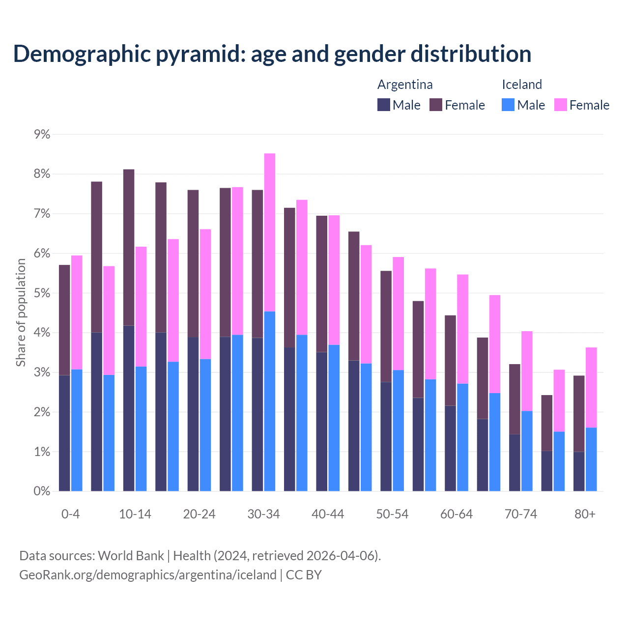 Demographics of Argentina compared to Iceland: