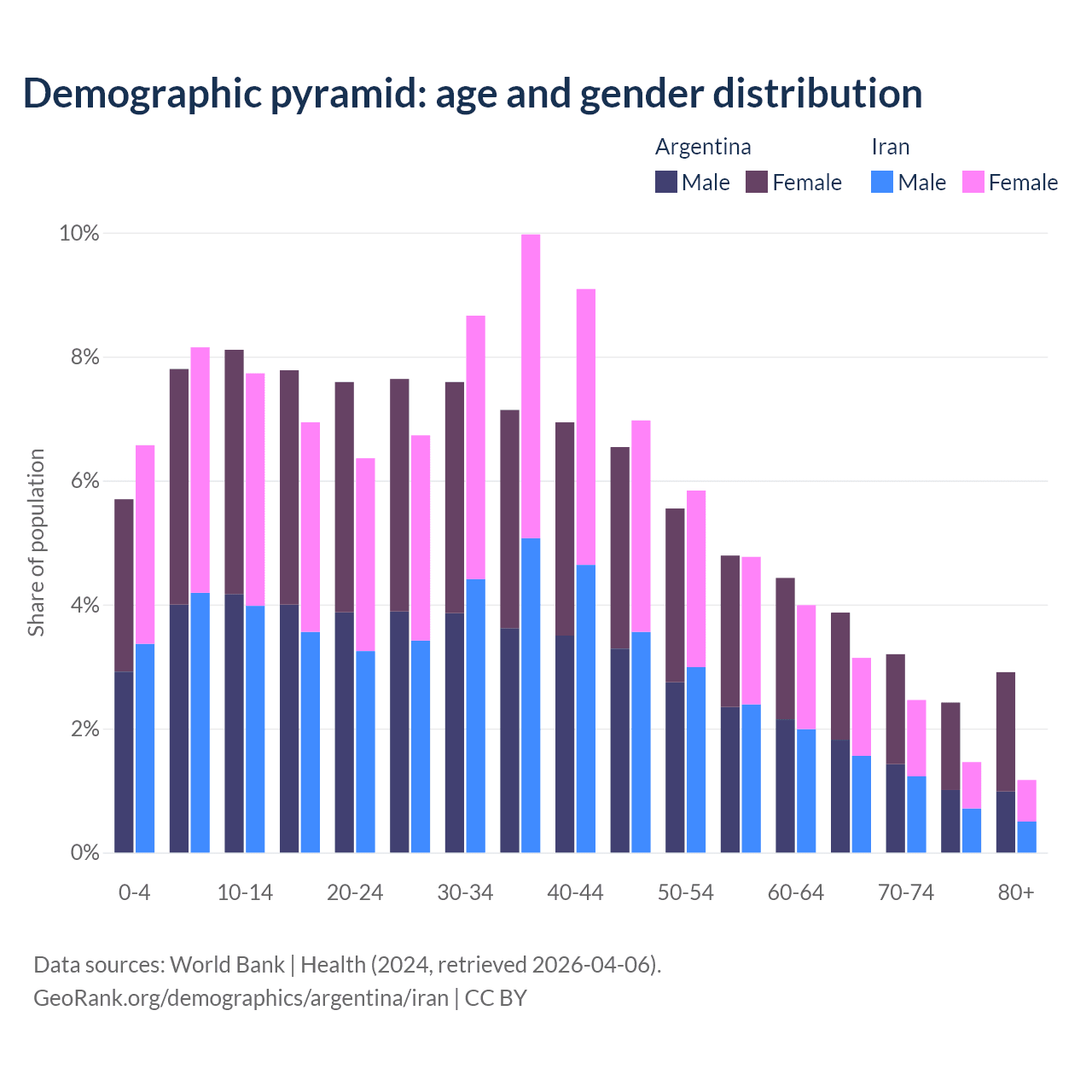 Demographics of Argentina compared to Iran: