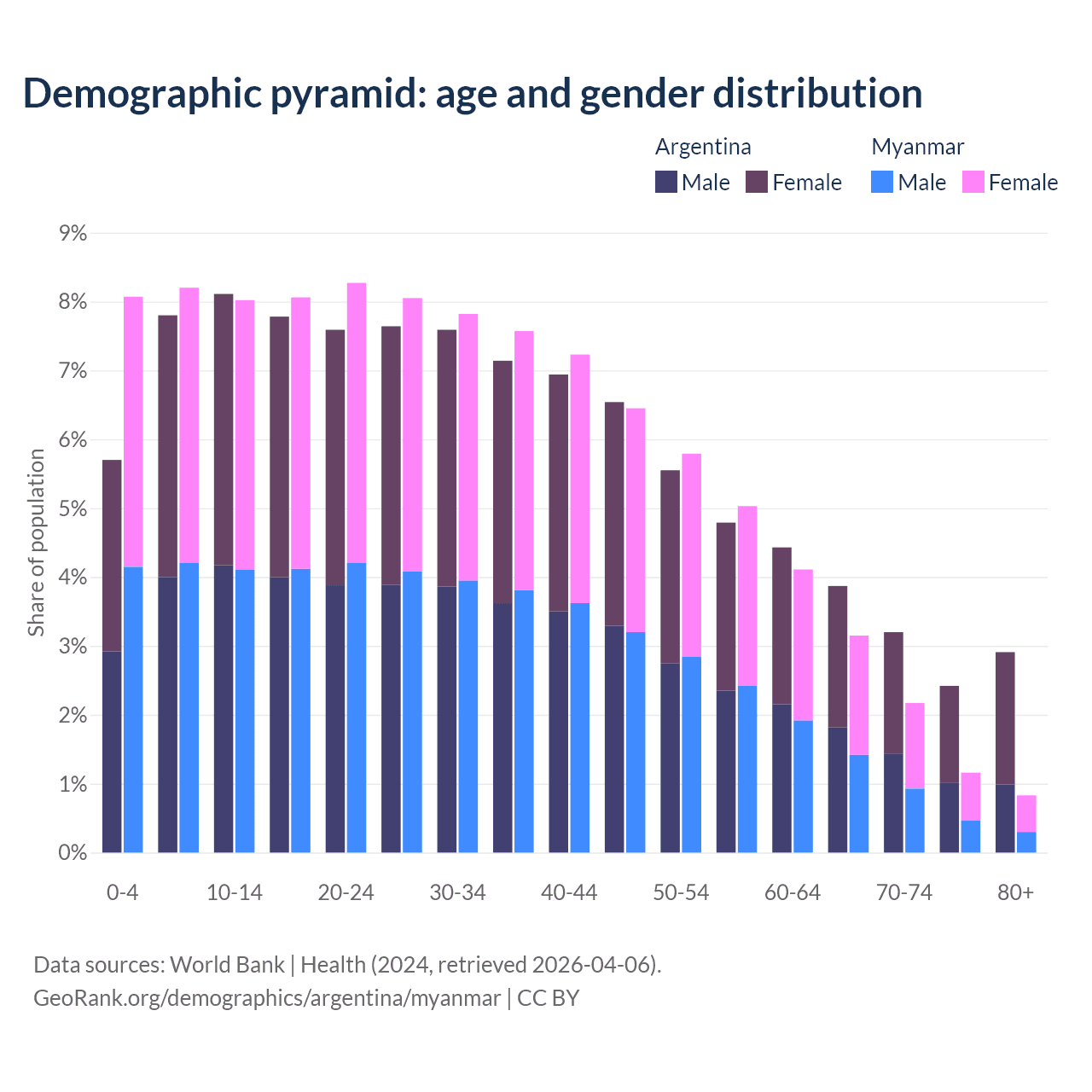 Demographics of Argentina compared to Myanmar: