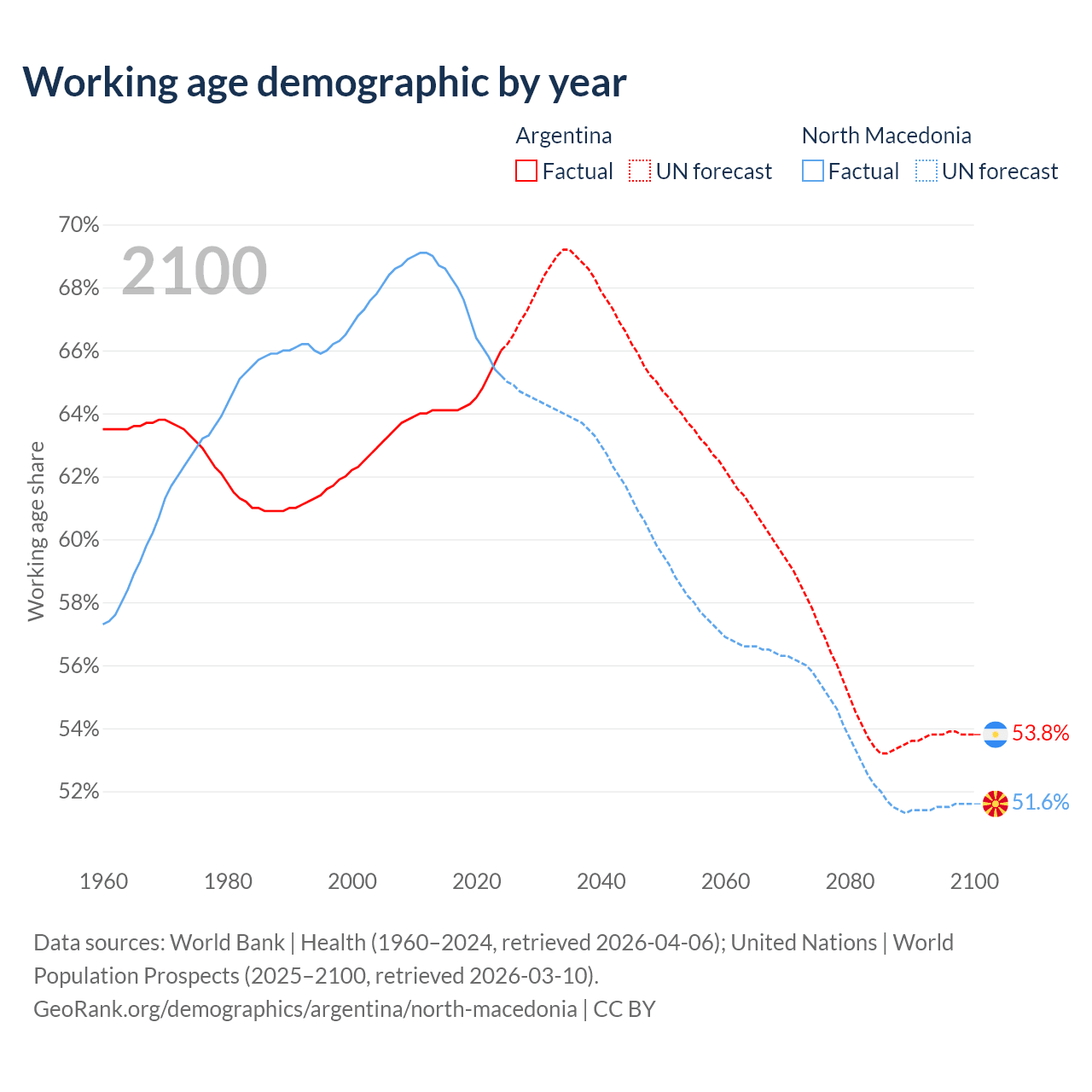 - Argentina has 30.4M working age adults (aged 15-64) vs 1.18M in North Macedonia.