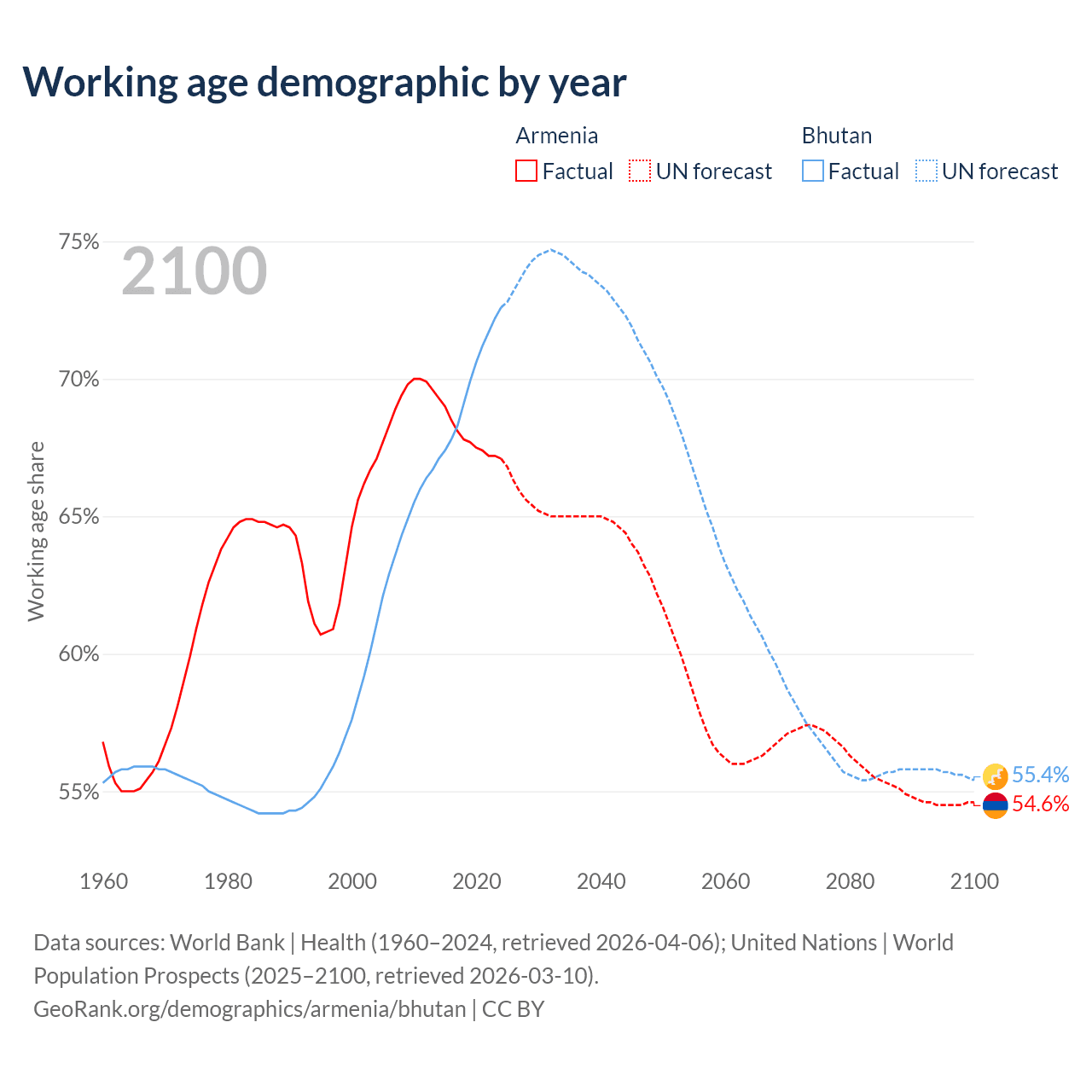 - Armenia has 2M working age adults (aged 15-64) vs 583K in Bhutan.