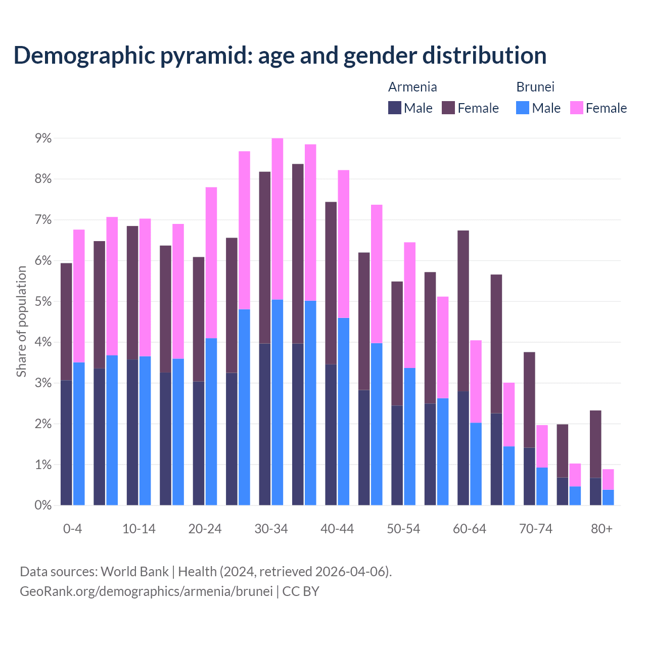 Demographics of Armenia compared to Brunei: