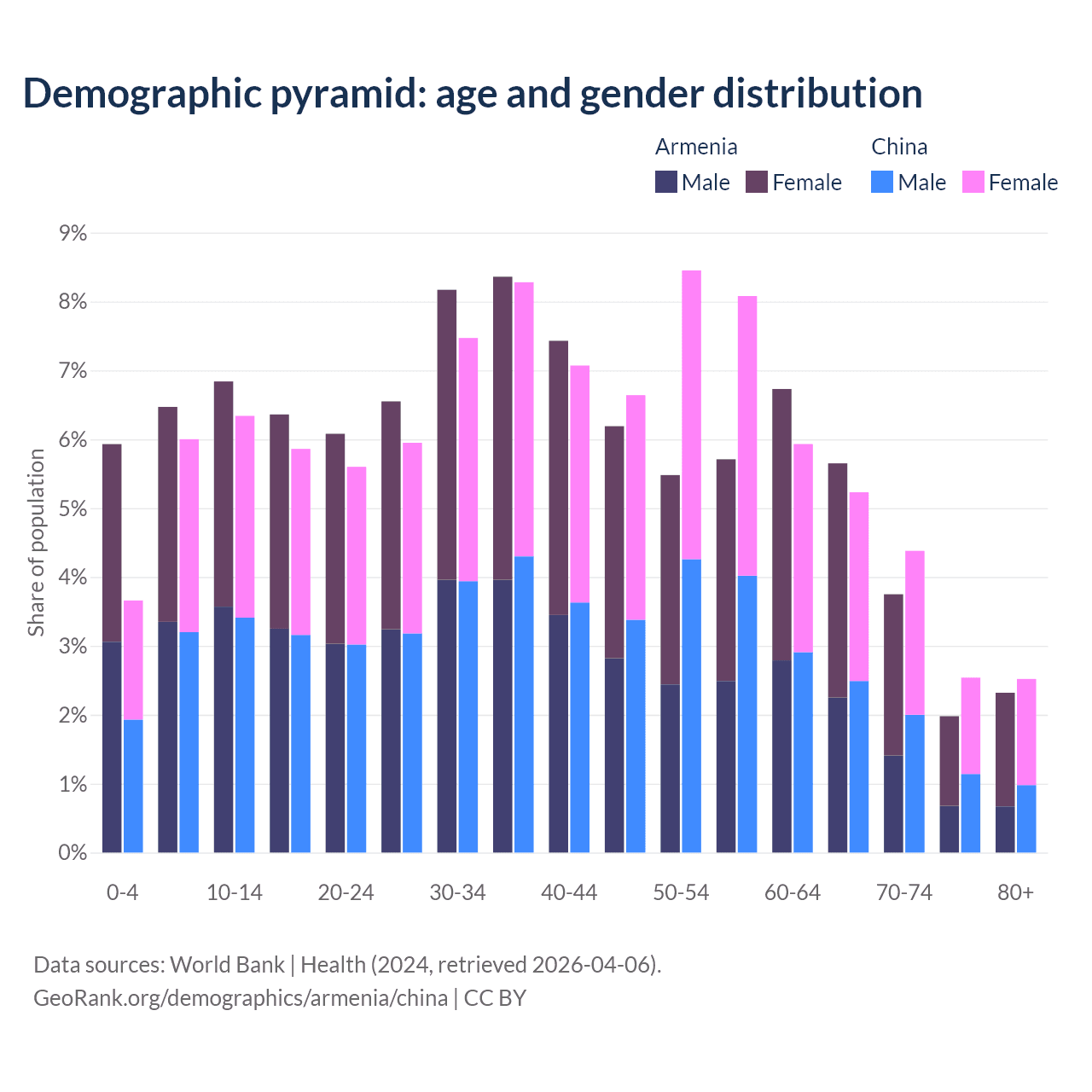 Demographics of Armenia compared to China: