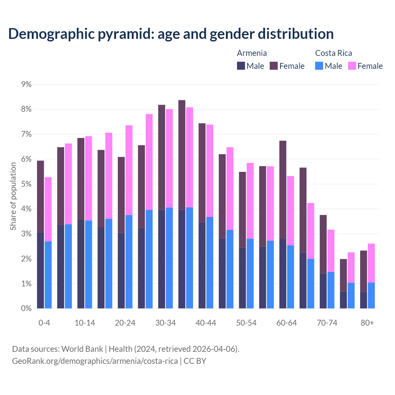 Demographics of Armenia compared to Costa Rica: