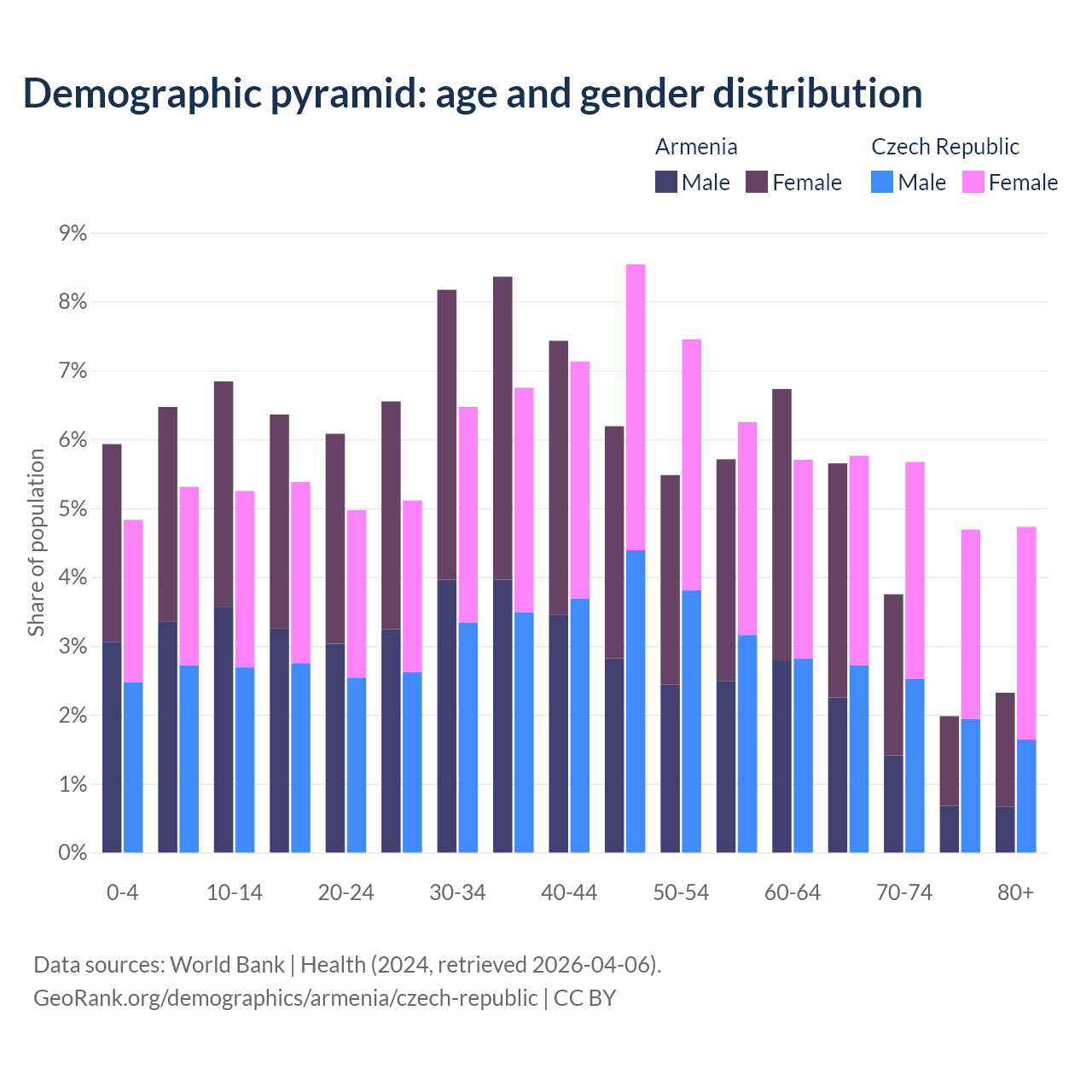 Demographics of Armenia compared to the Czech Republic: