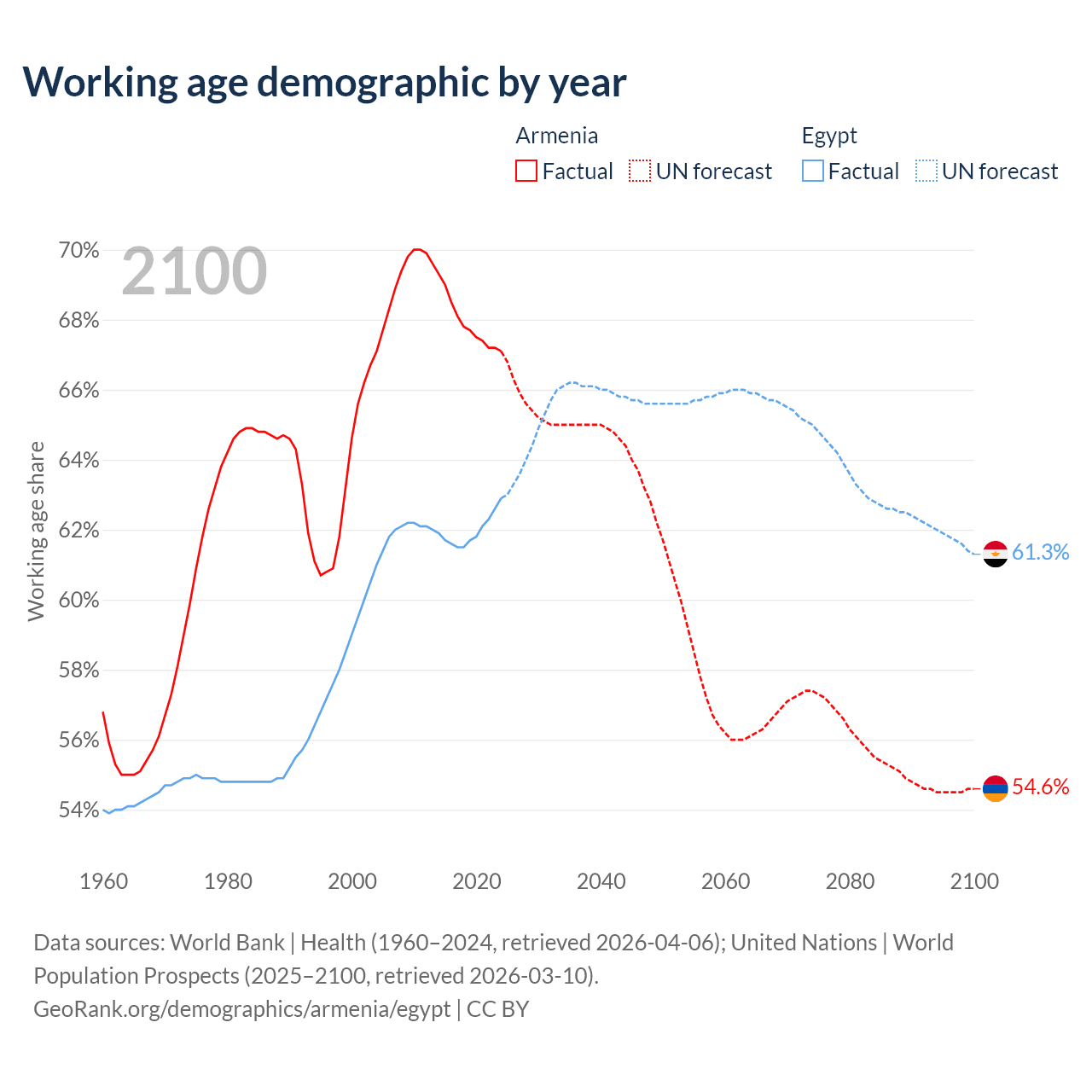 - Armenia has 2M working age adults (aged 15-64) vs 75.9M in Egypt.