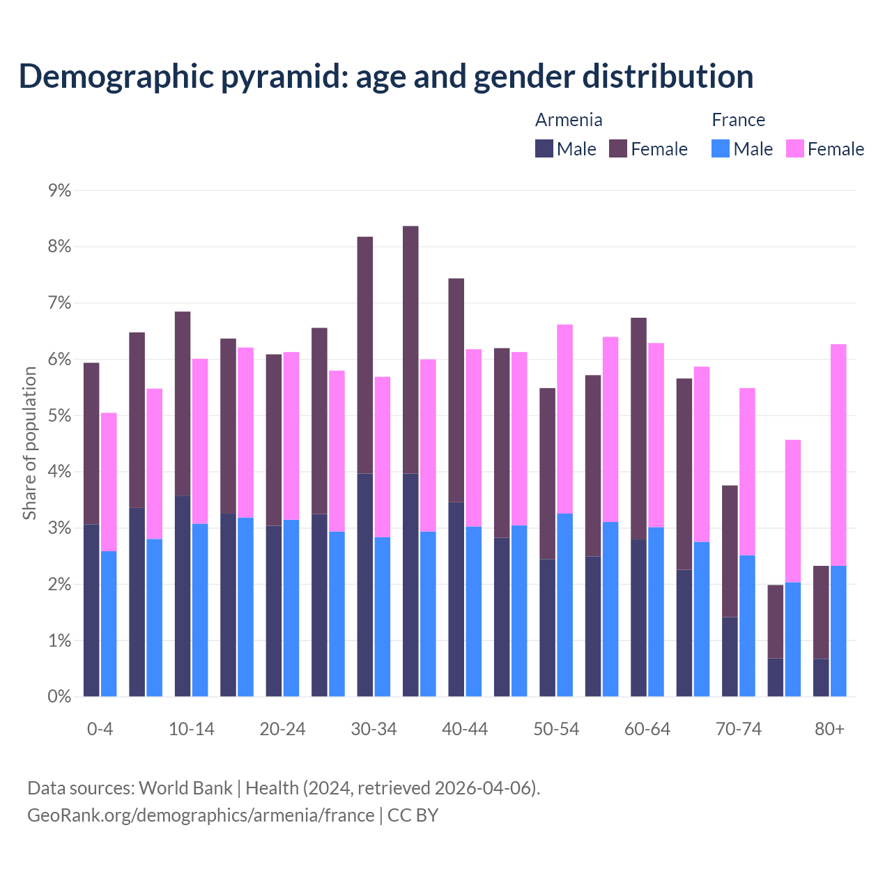 Demographics of Armenia compared to France: