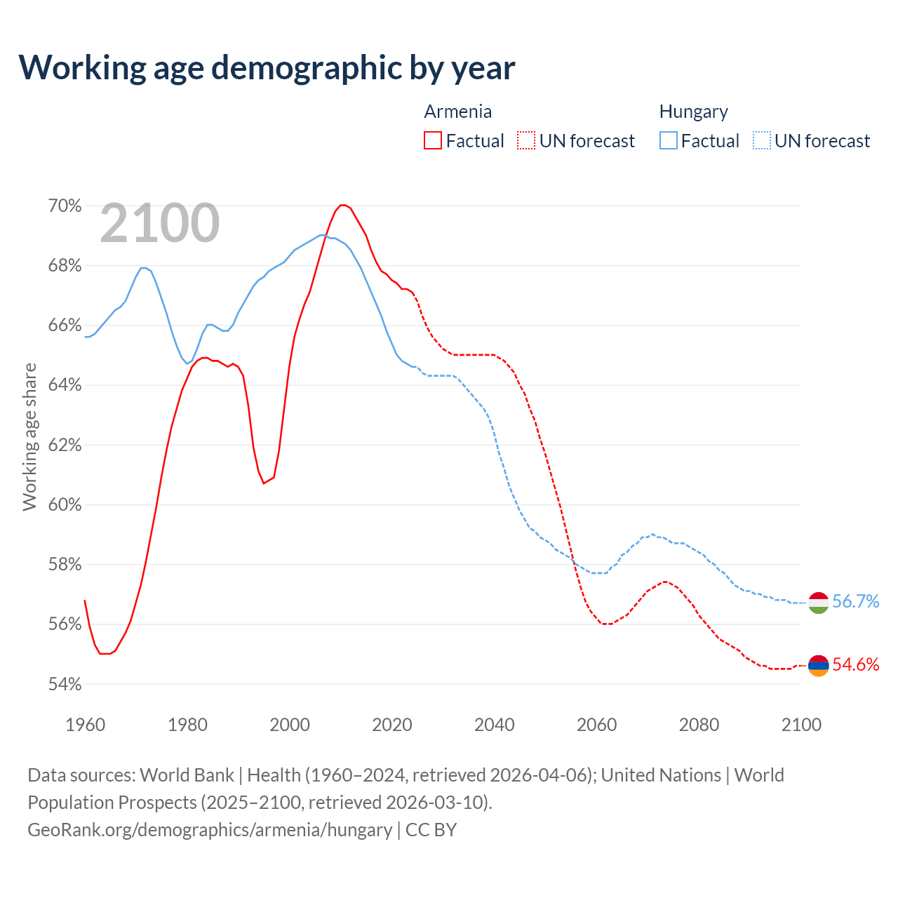 - Armenia has 2M working age adults (aged 15-64) vs 6.12M in Hungary.