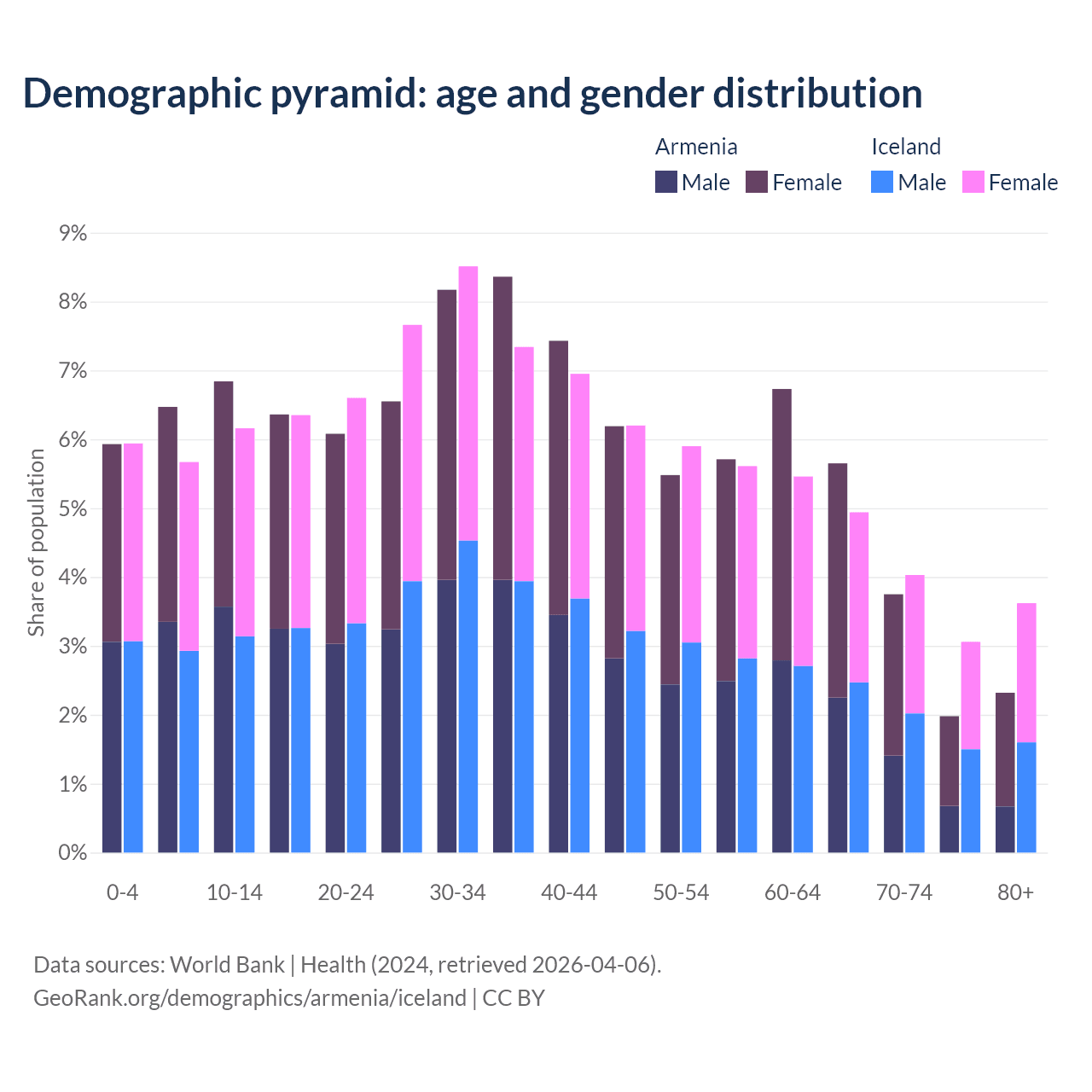 Demographics of Armenia compared to Iceland: