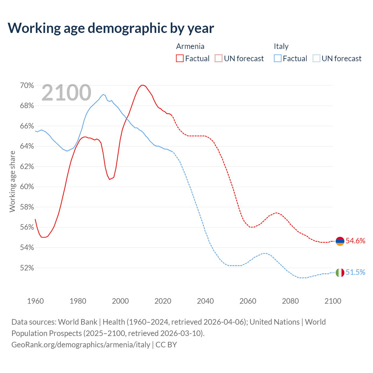- Armenia has 2M working age adults (aged 15-64) vs 37.2M in Italy.