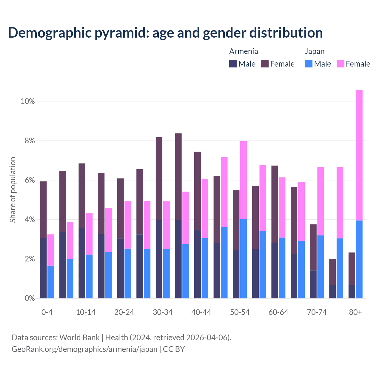 Demographics of Armenia compared to Japan: