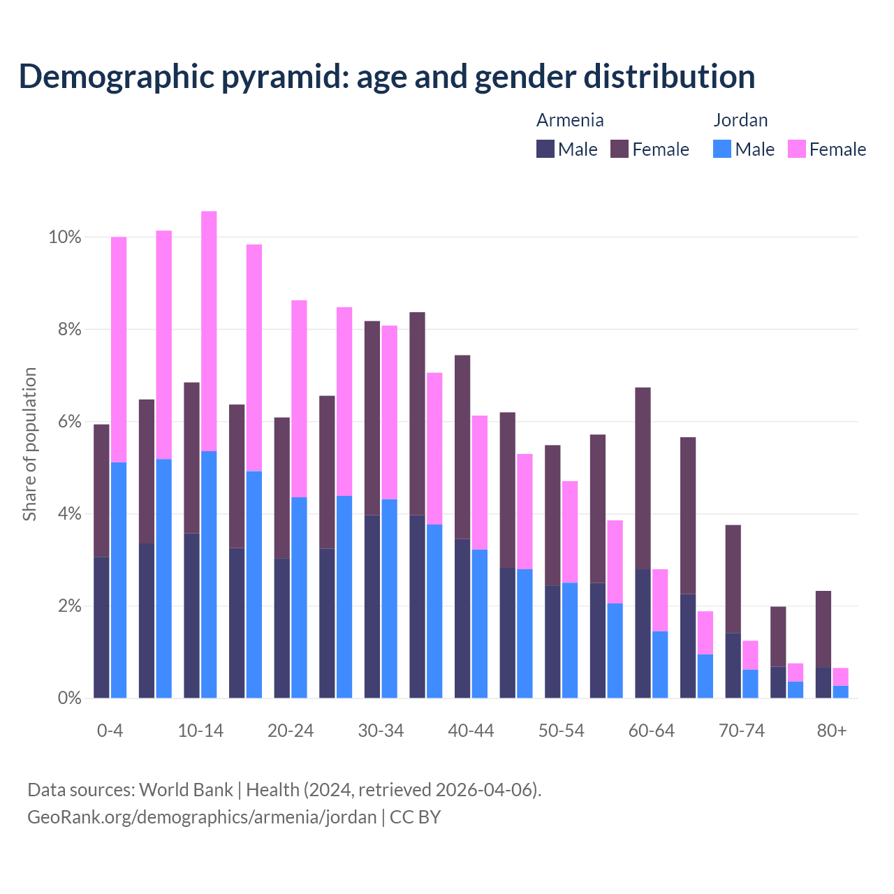 Demographics of Armenia compared to Jordan: