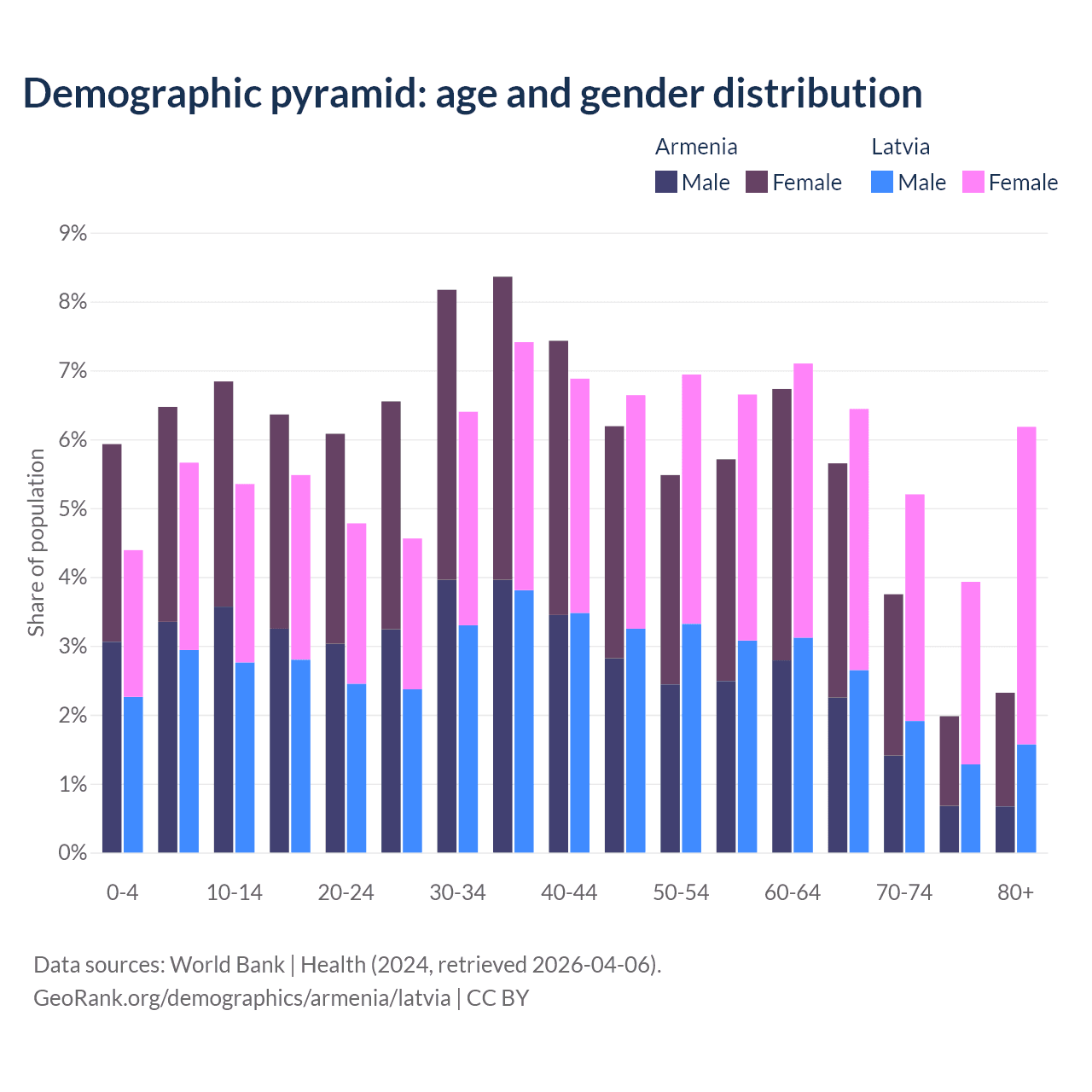 Demographics of Armenia compared to Latvia: