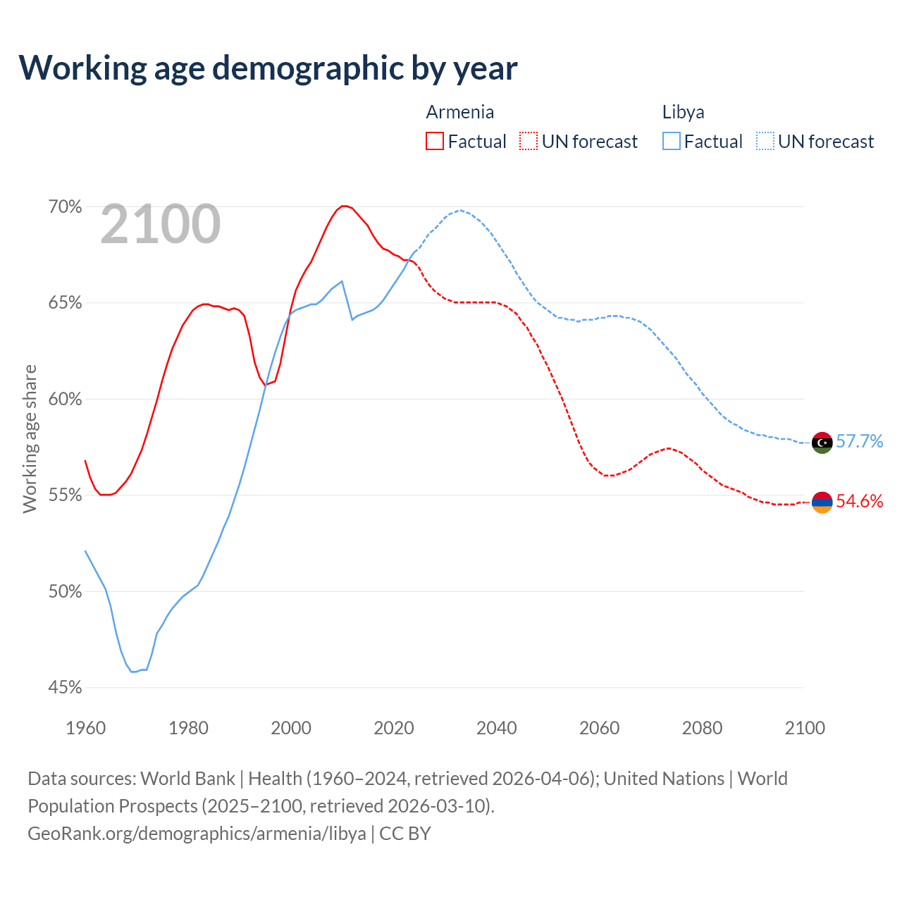 - Armenia has 2M working age adults (aged 15-64) vs 5.11M in Libya.