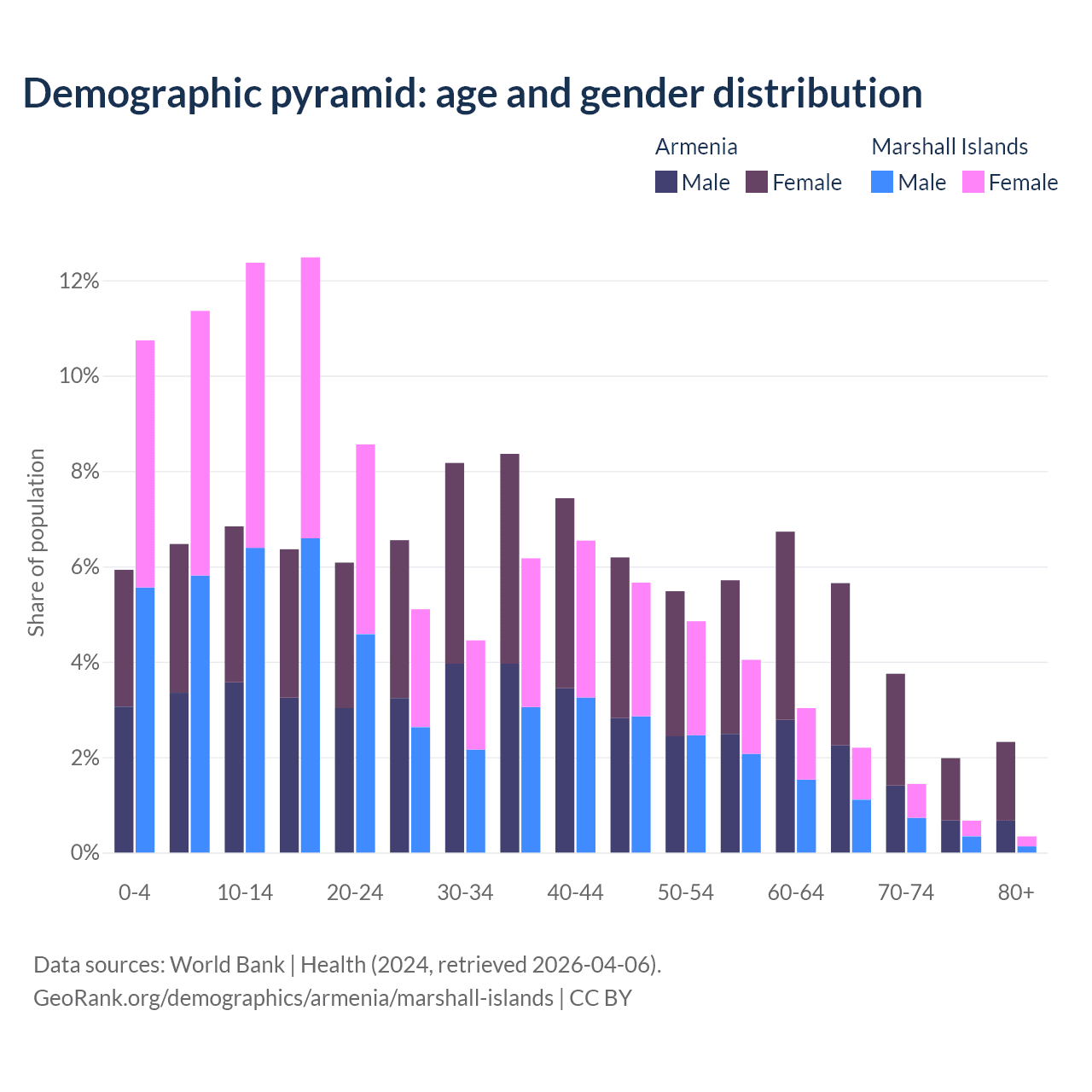 Demographics of Armenia compared to the Marshall Islands: