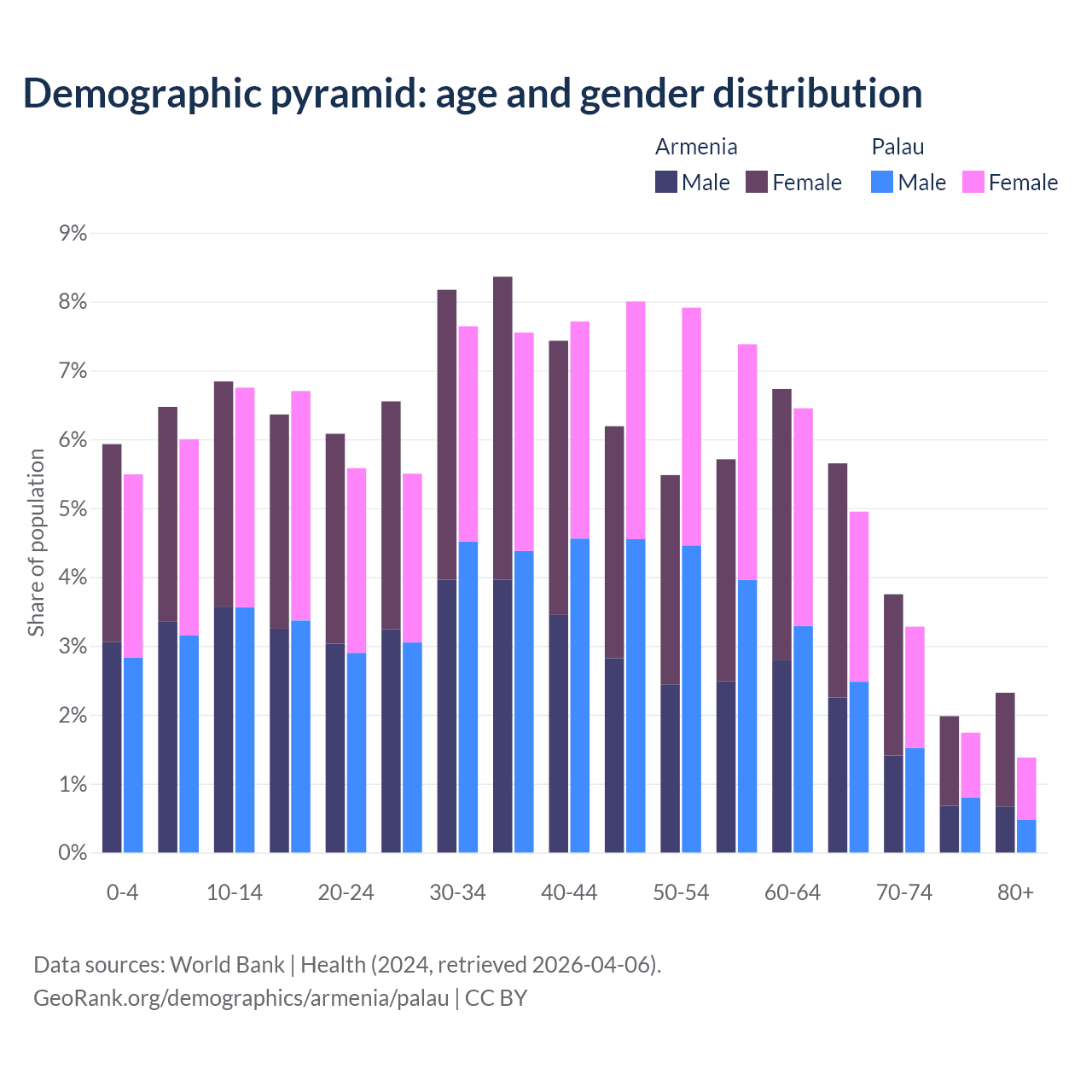 Demographics of Armenia compared to Palau: