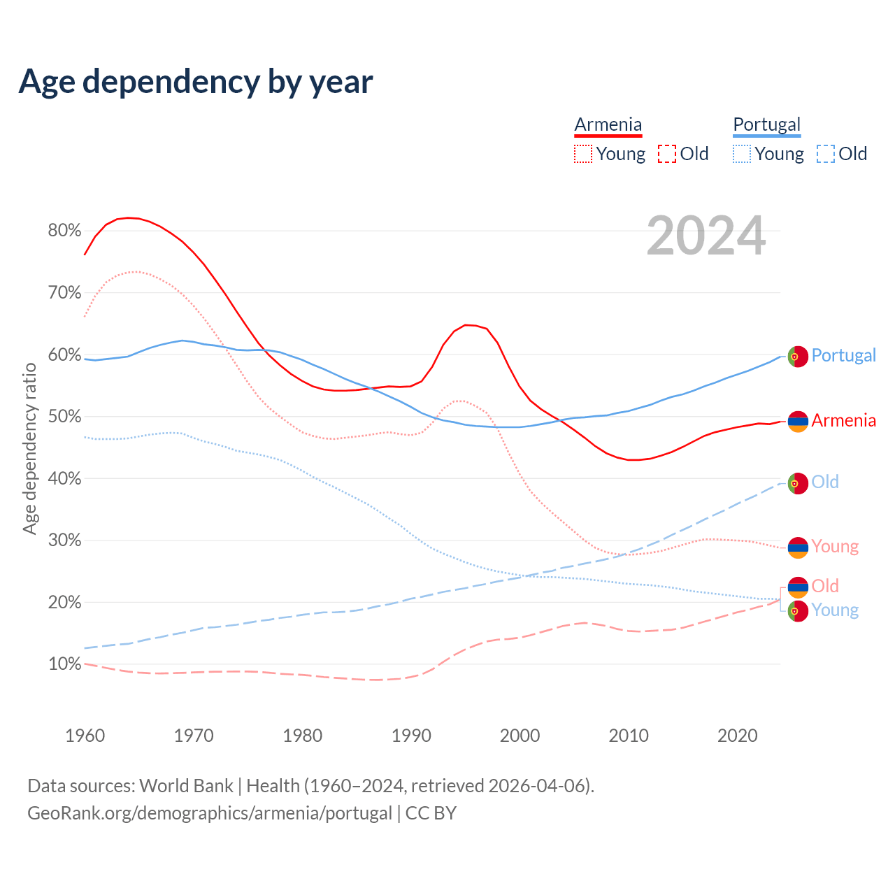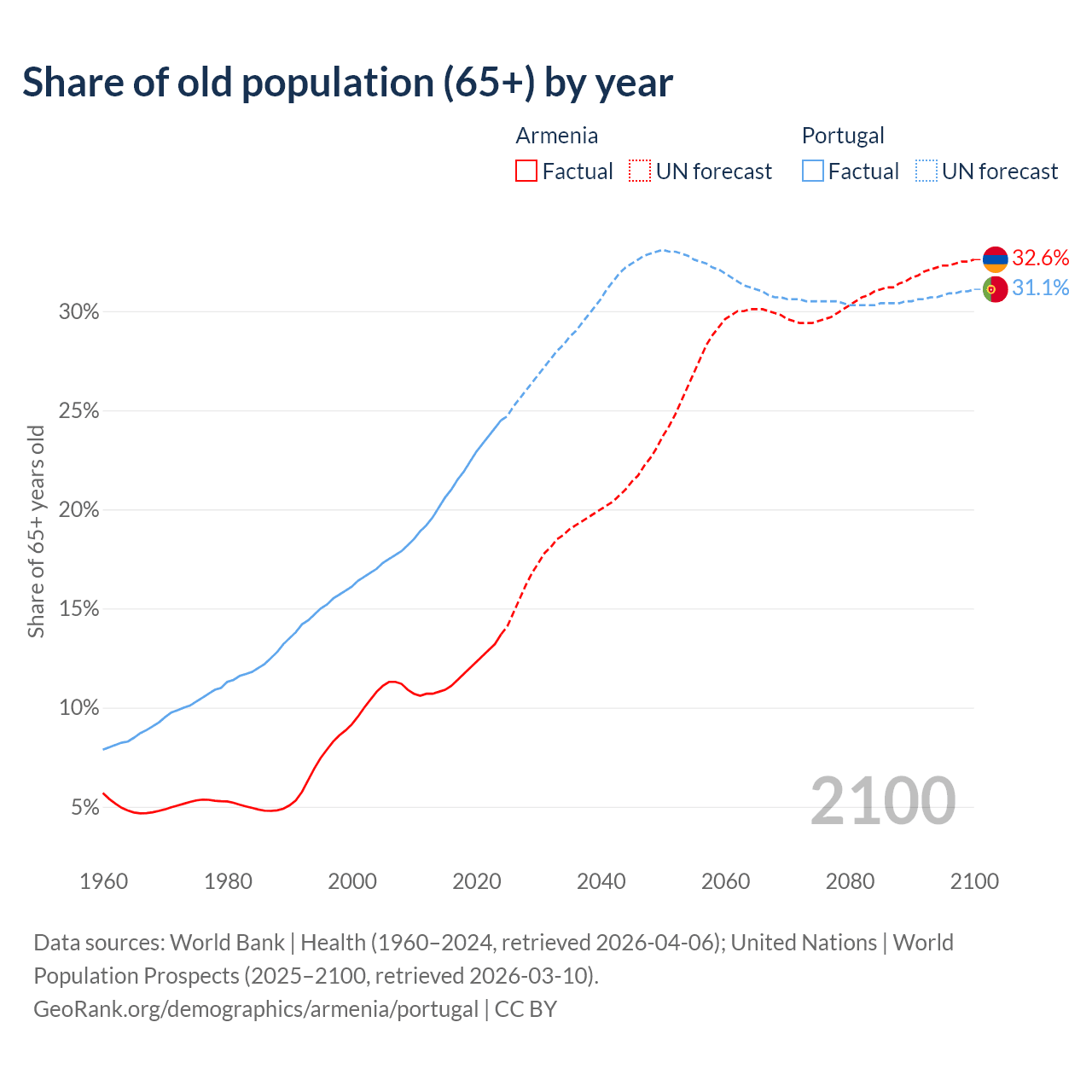 The share of older people aged 65 and over is 13.7% in Armenia and 24.5% in Portugal. Life expectancy in Armenia compared to Portugal .